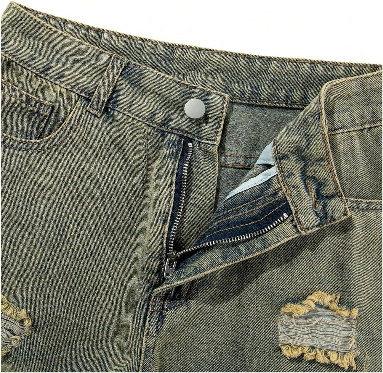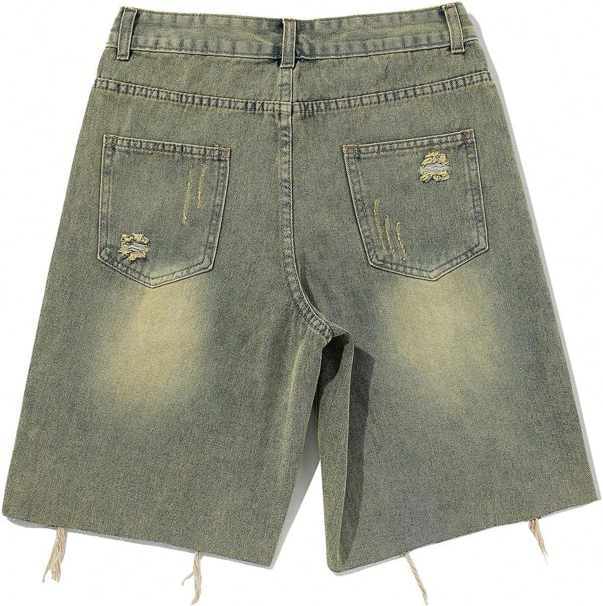 SOLY HUX Men’s Ripped Jean Shorts Streetwear Distressed Straight Leg Summer Denim Shorts(Light Wash)