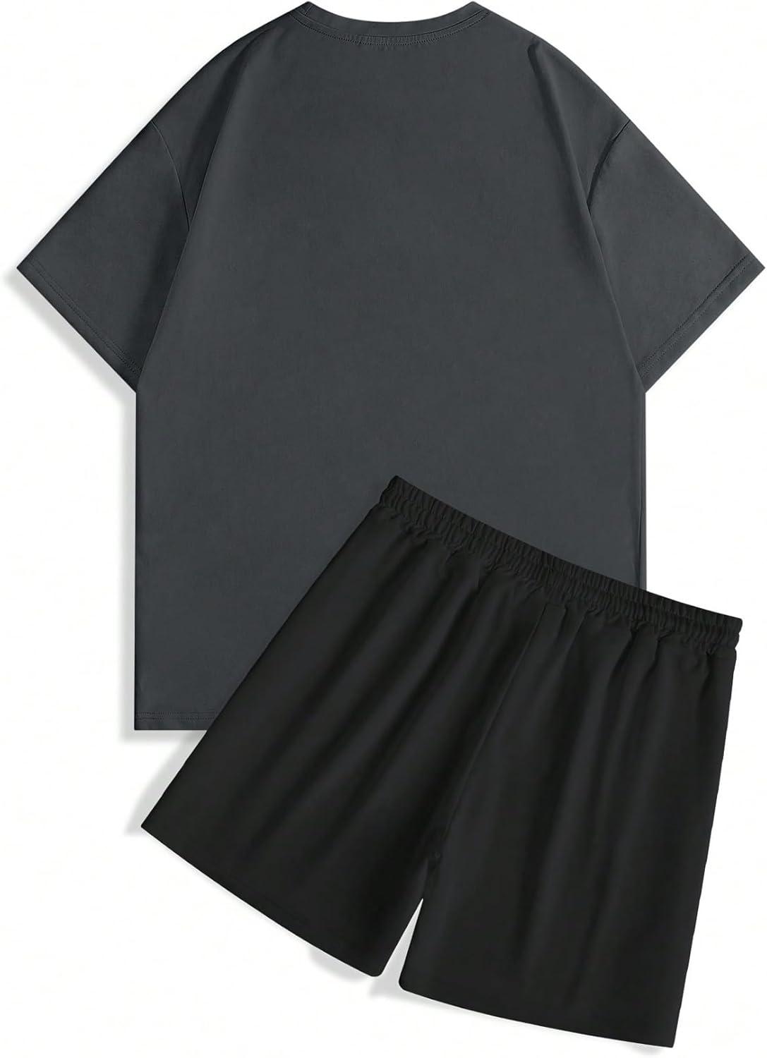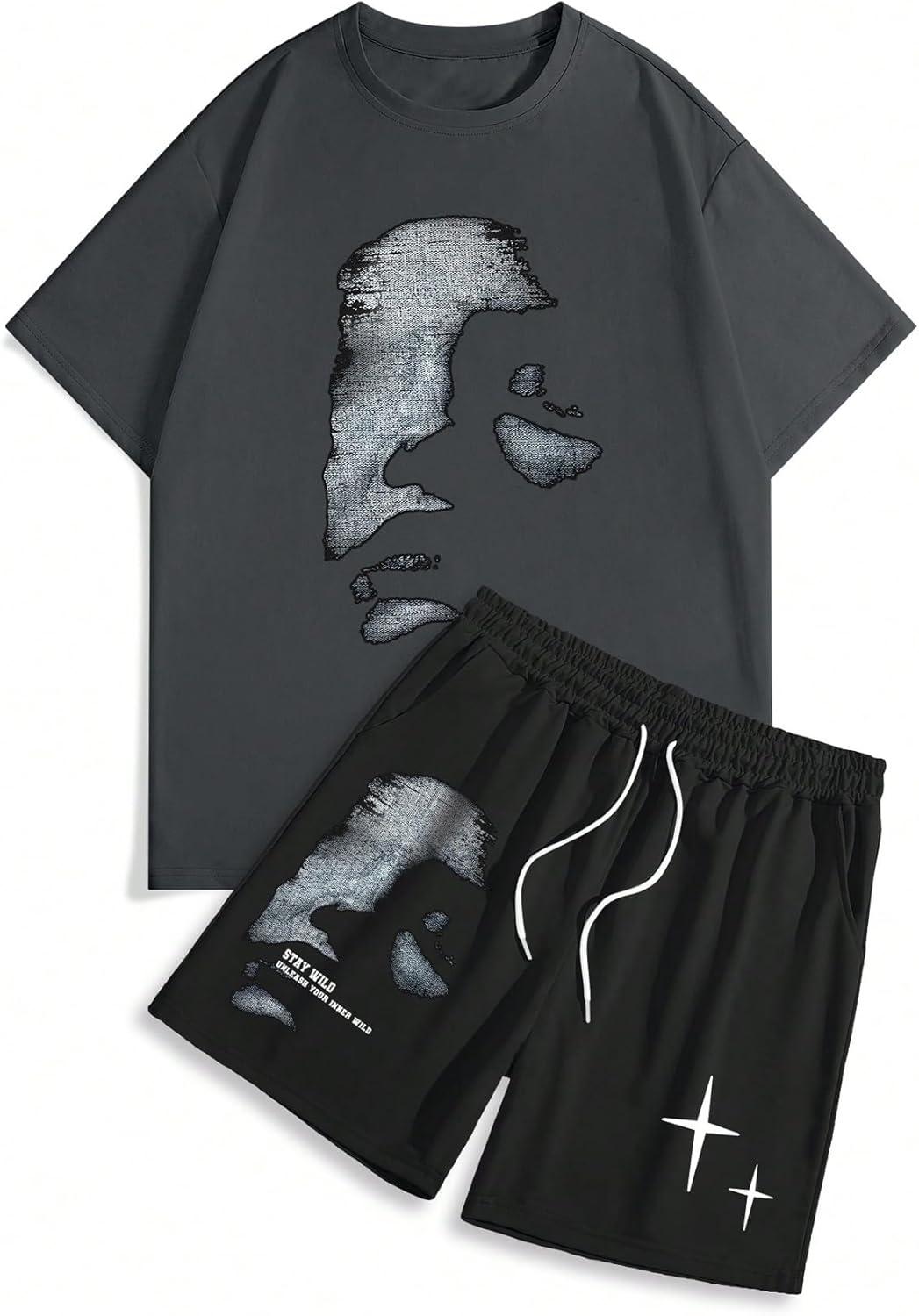 SOLY HUX Men’s Short Sets Outfits Two Piece Tracksuit Short Sleeve T Shirt and Shorts Summer Sport Suit(Grey Black Graphic)