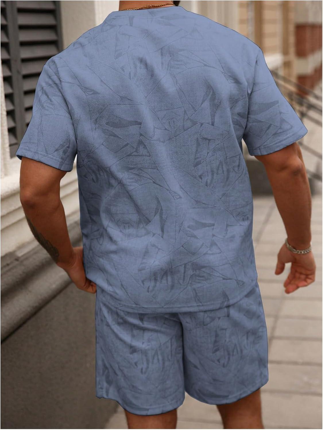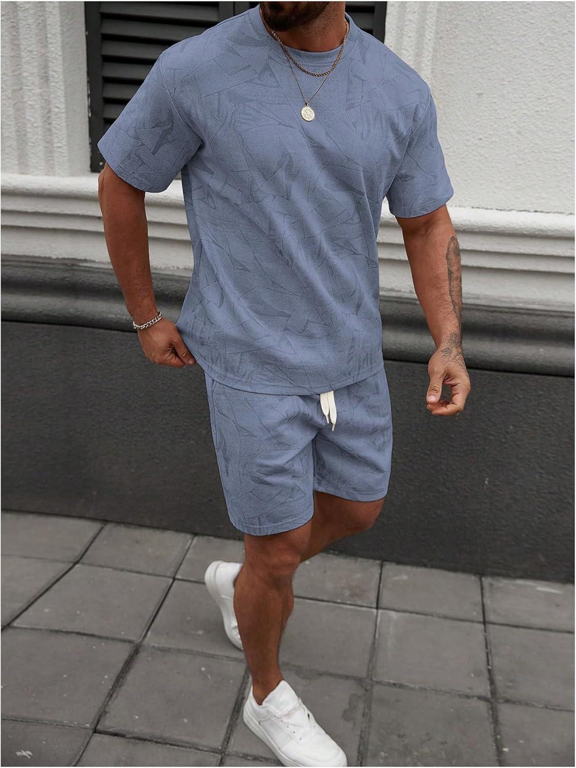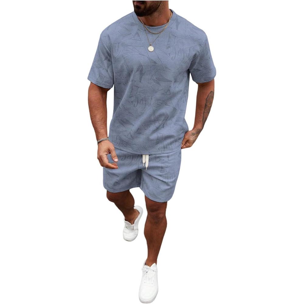 SOLY HUX Men’s Short Sets Short Sleeve Outfit Summer Tracksuit T Shirt and Shorts Sports Clothes(Plain Blue)