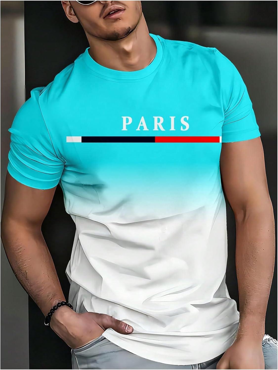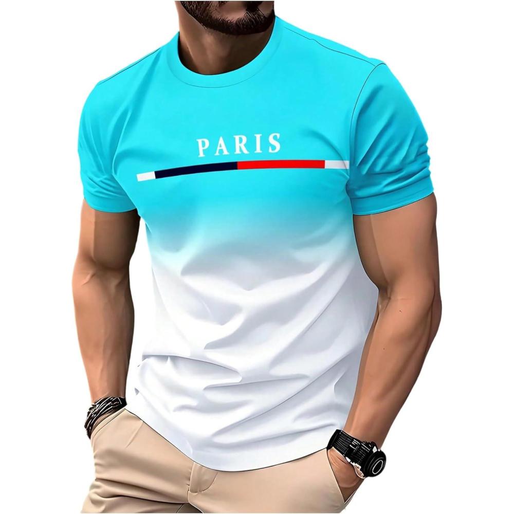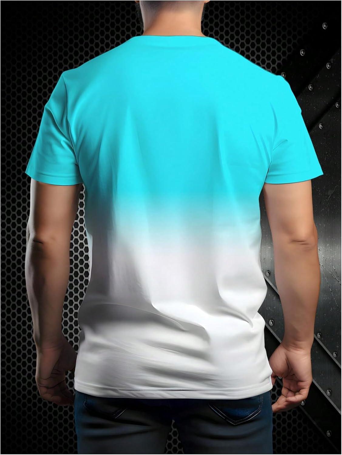 SOLY HUX Men’s Short Sleeve Crew Neck Cool T Shirts Ombre Tops Graphic Tees Summer Outfit(Blue White Multi)