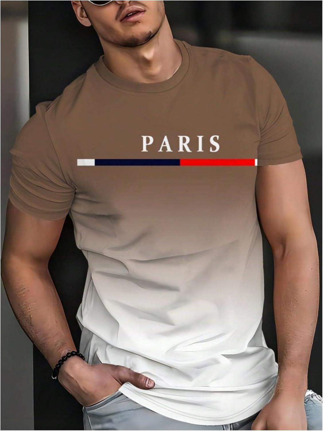 SOLY HUX Men’s Short Sleeve Crew Neck Cool T Shirts Ombre Tops Graphic Tees Summer Outfit(Brown White)
