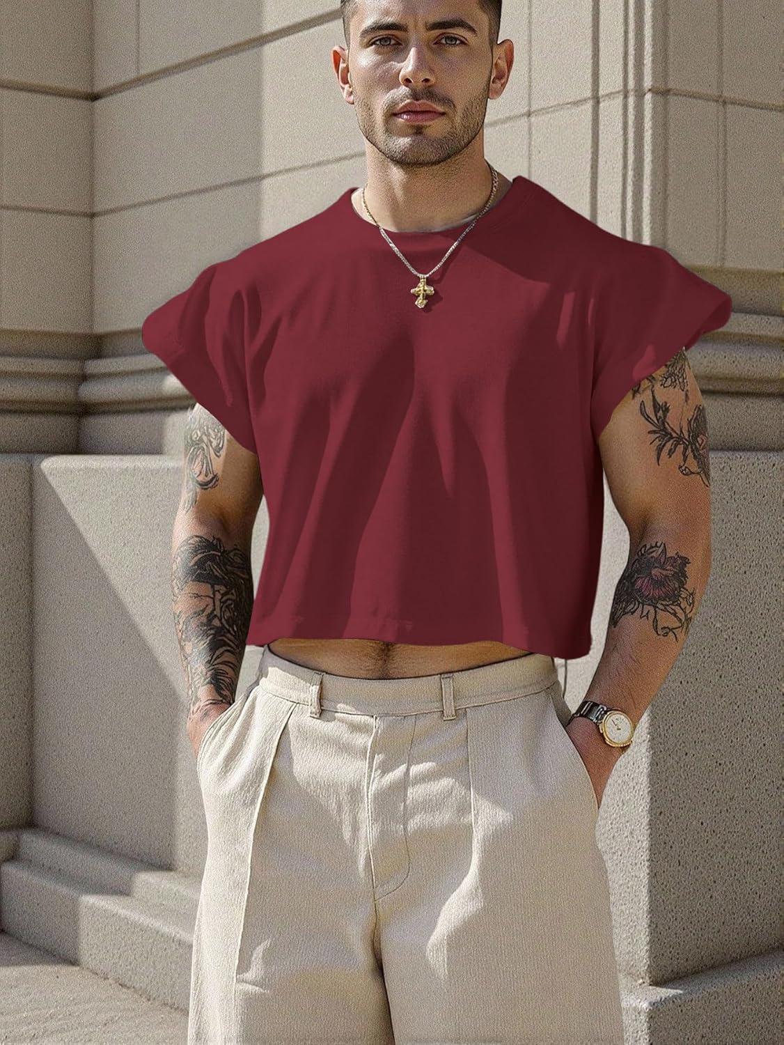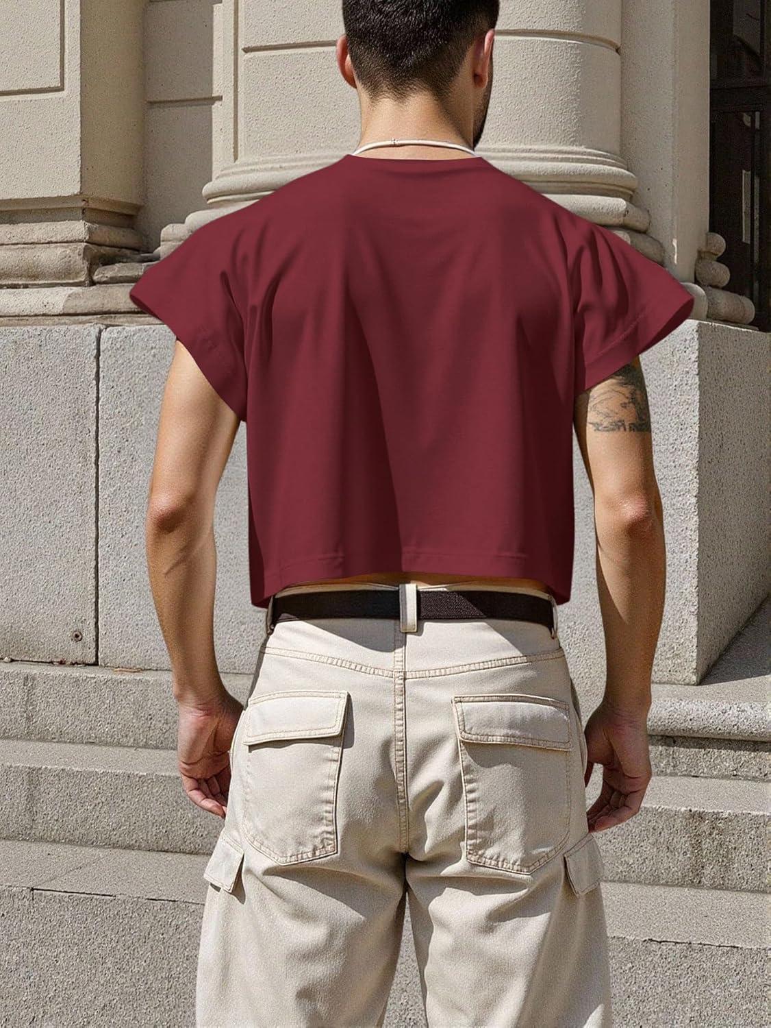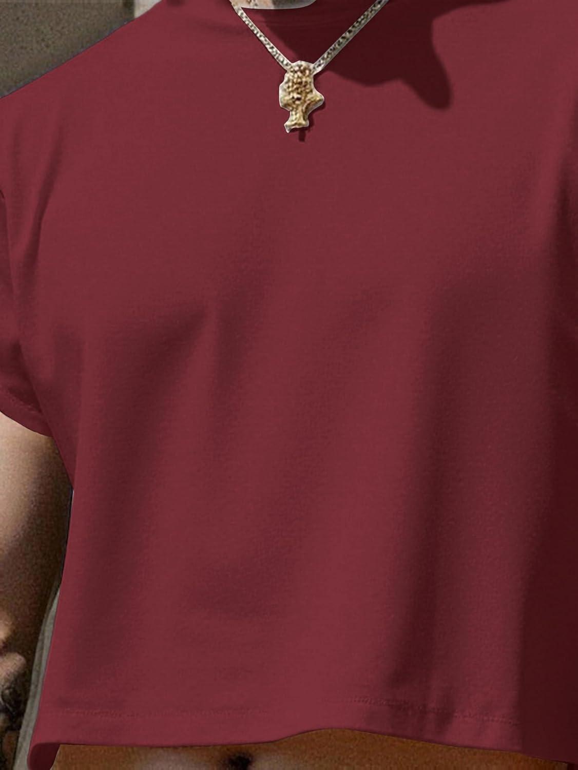 SOLY HUX Men’s Short Sleeve Crew Neck Cropped T Shirts Summer Basic Baggy Tee Tops(Solid Burgundy)