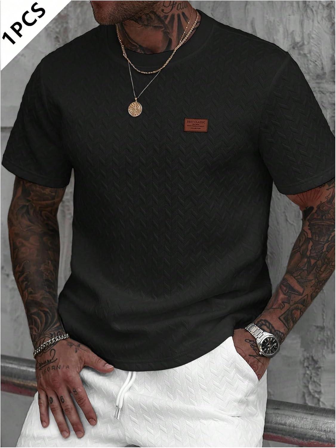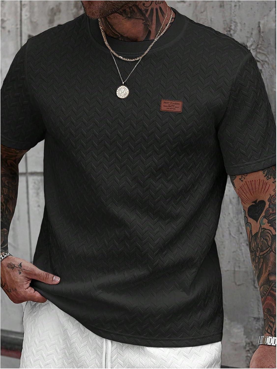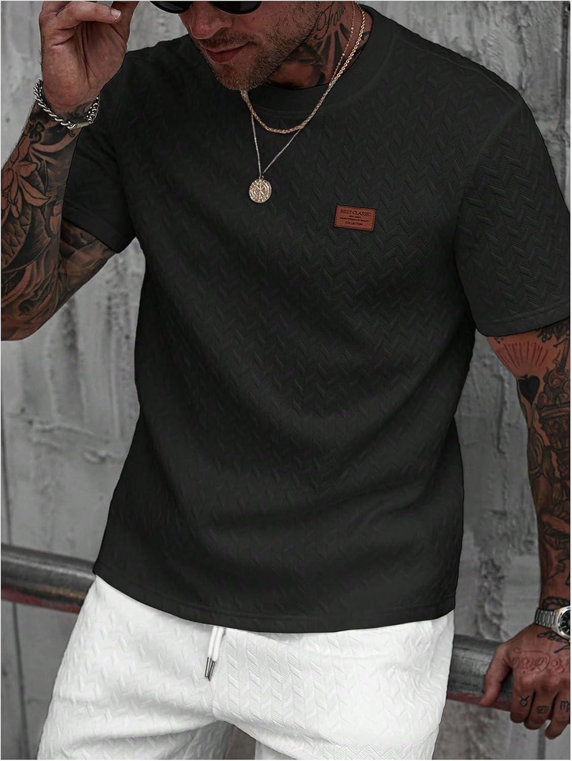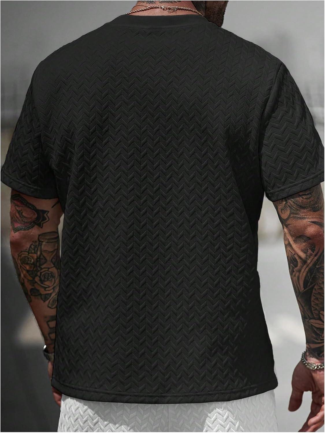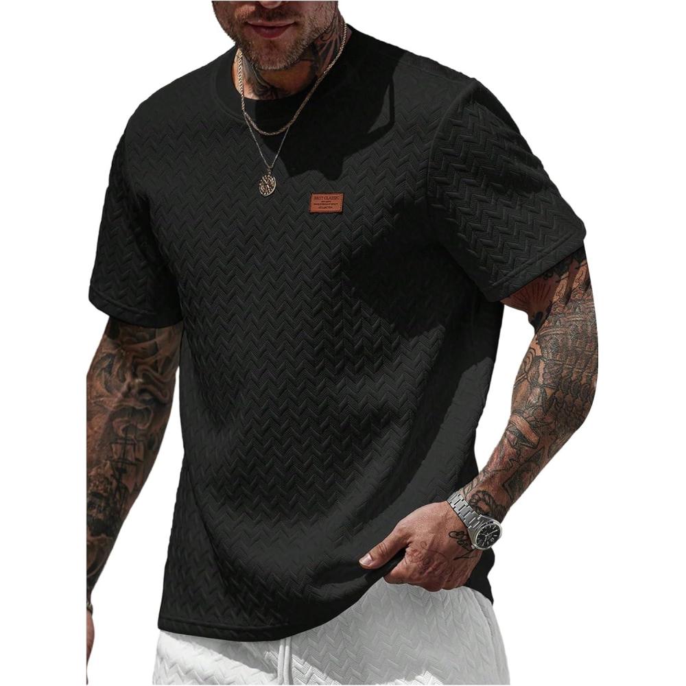 SOLY HUX Men’s Short Sleeve Knit T Shirts Crew Neck Textured Classic Casual Tee Tops(Plain Black)