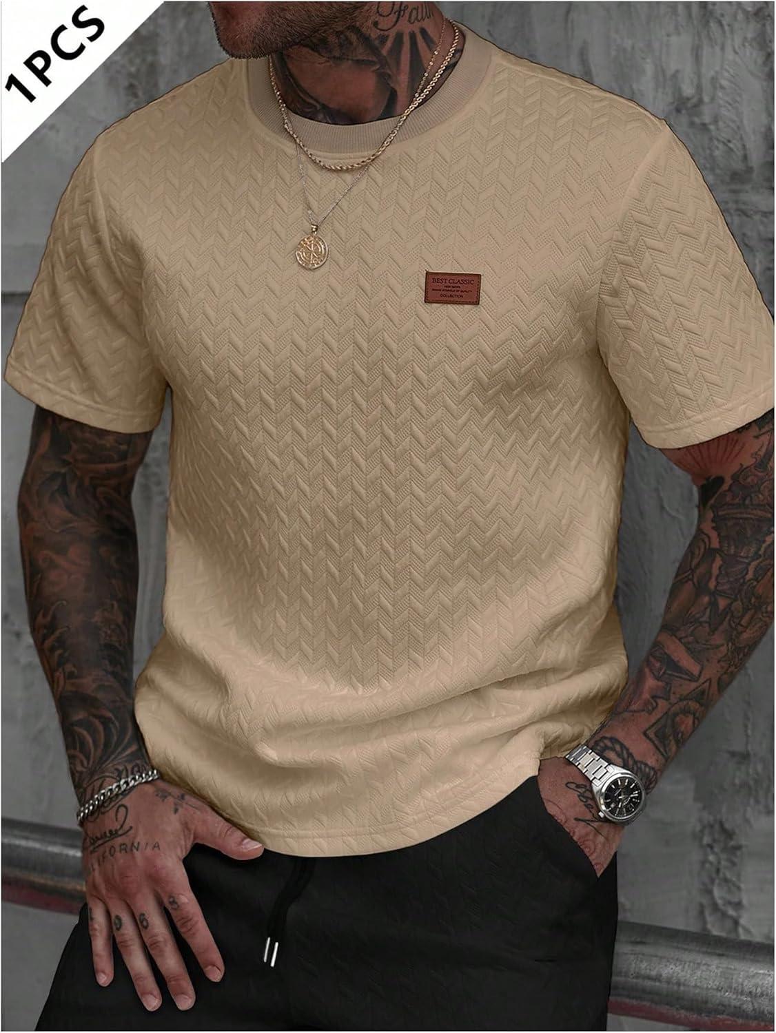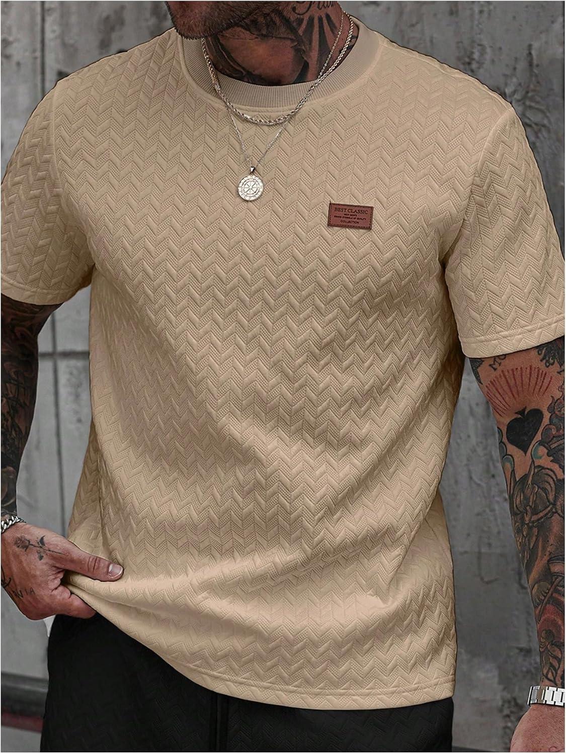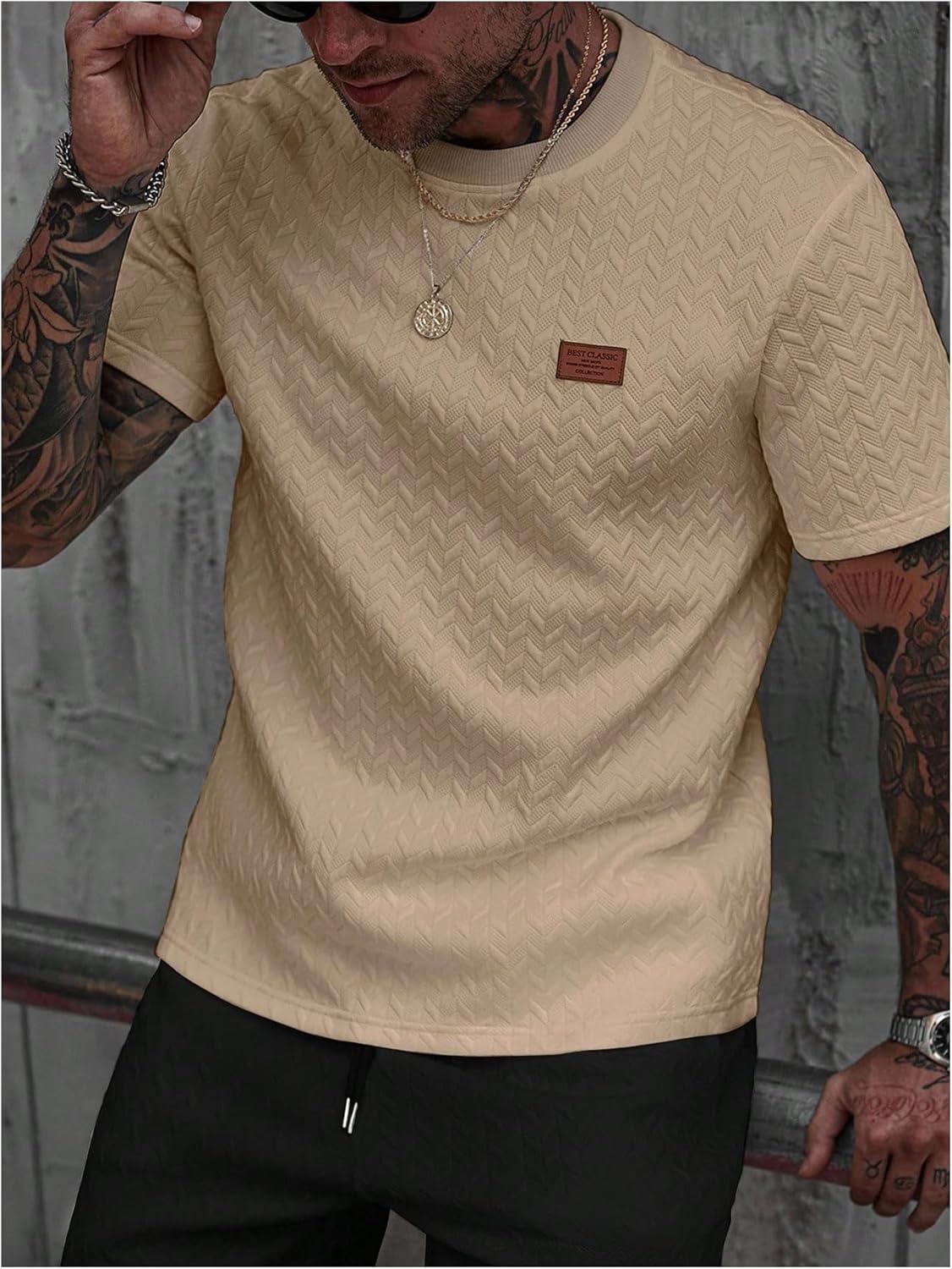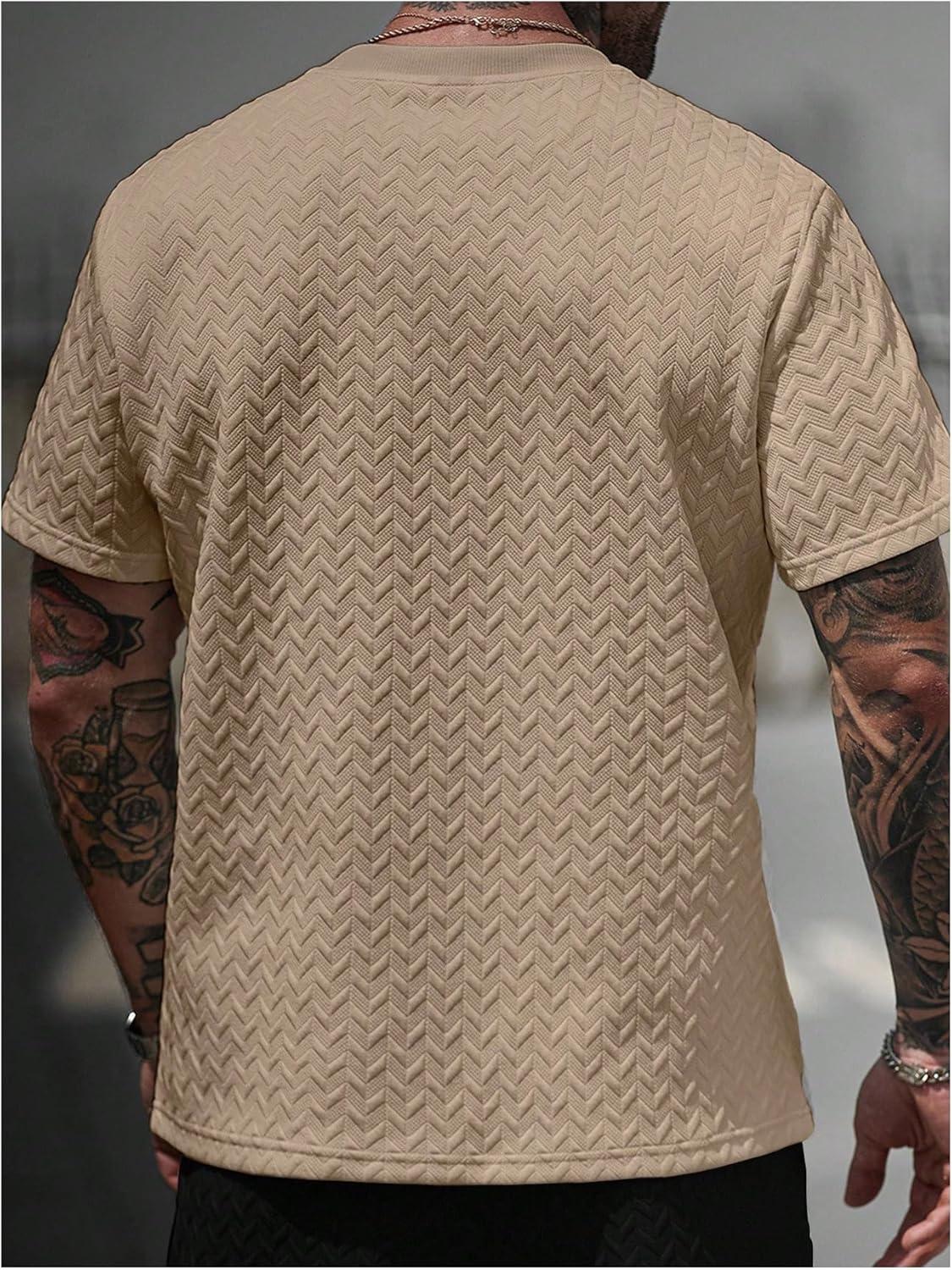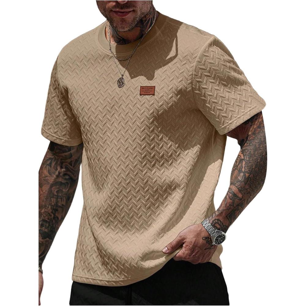 SOLY HUX Men’s Short Sleeve Knit T Shirts Crew Neck Textured Classic Casual Tee Tops(Plain Khaki)