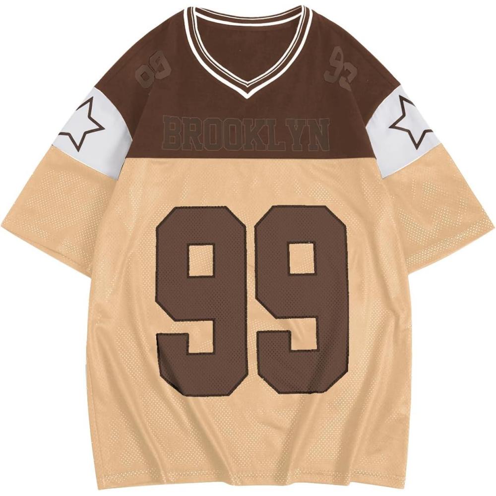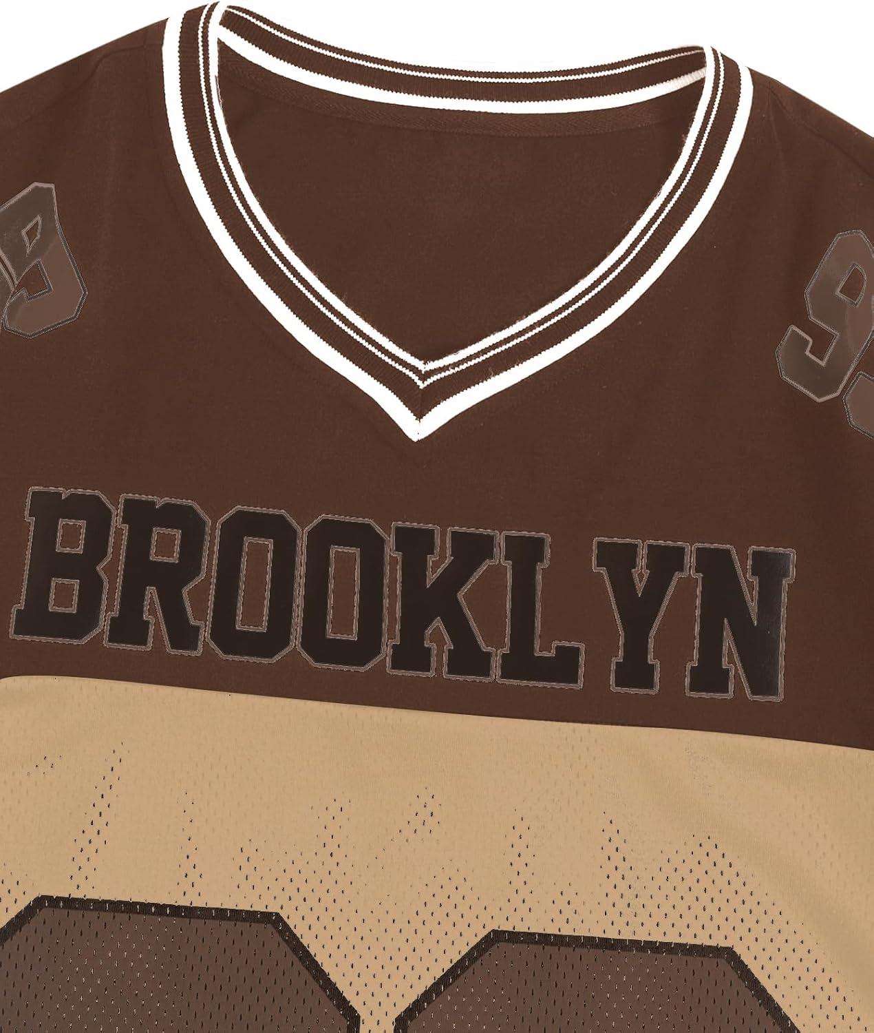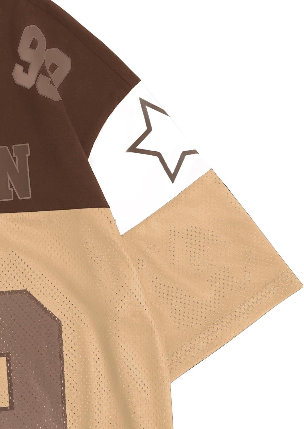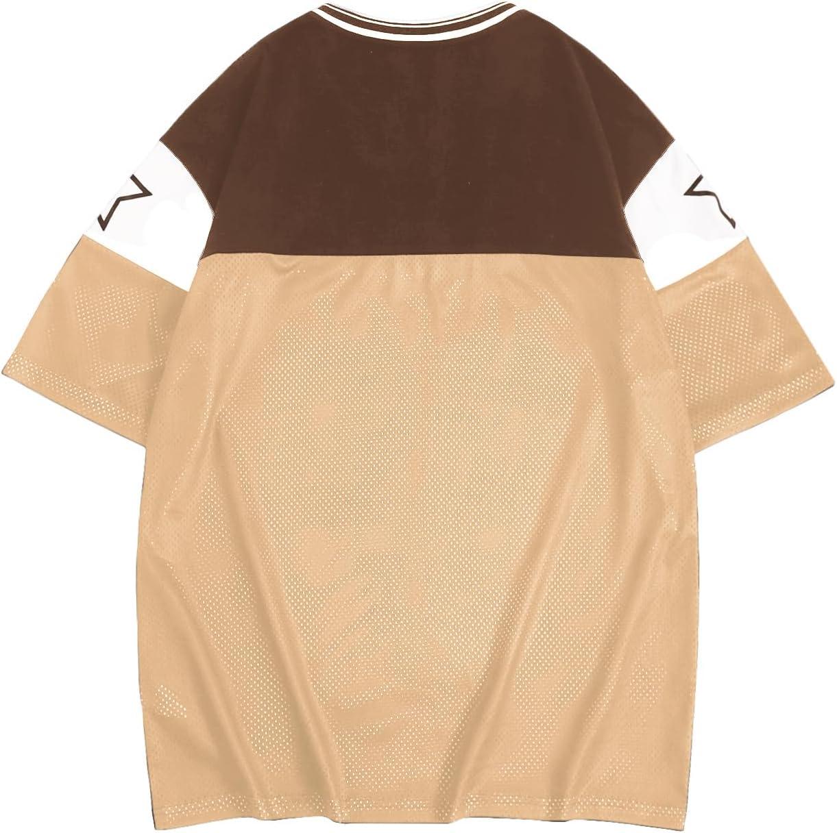 SOLY HUX Men’s Short Sleeve Letter Graphic Tees Crew Neck Drop Shoulder Jersey Tee Shirt Streetwear(Brown Letter)
