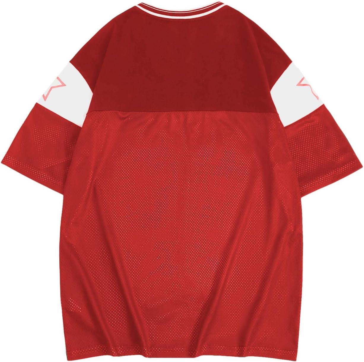 SOLY HUX Men’s Short Sleeve Letter Graphic Tees Crew Neck Drop Shoulder Jersey Tee Shirt Streetwear(Red Letter)