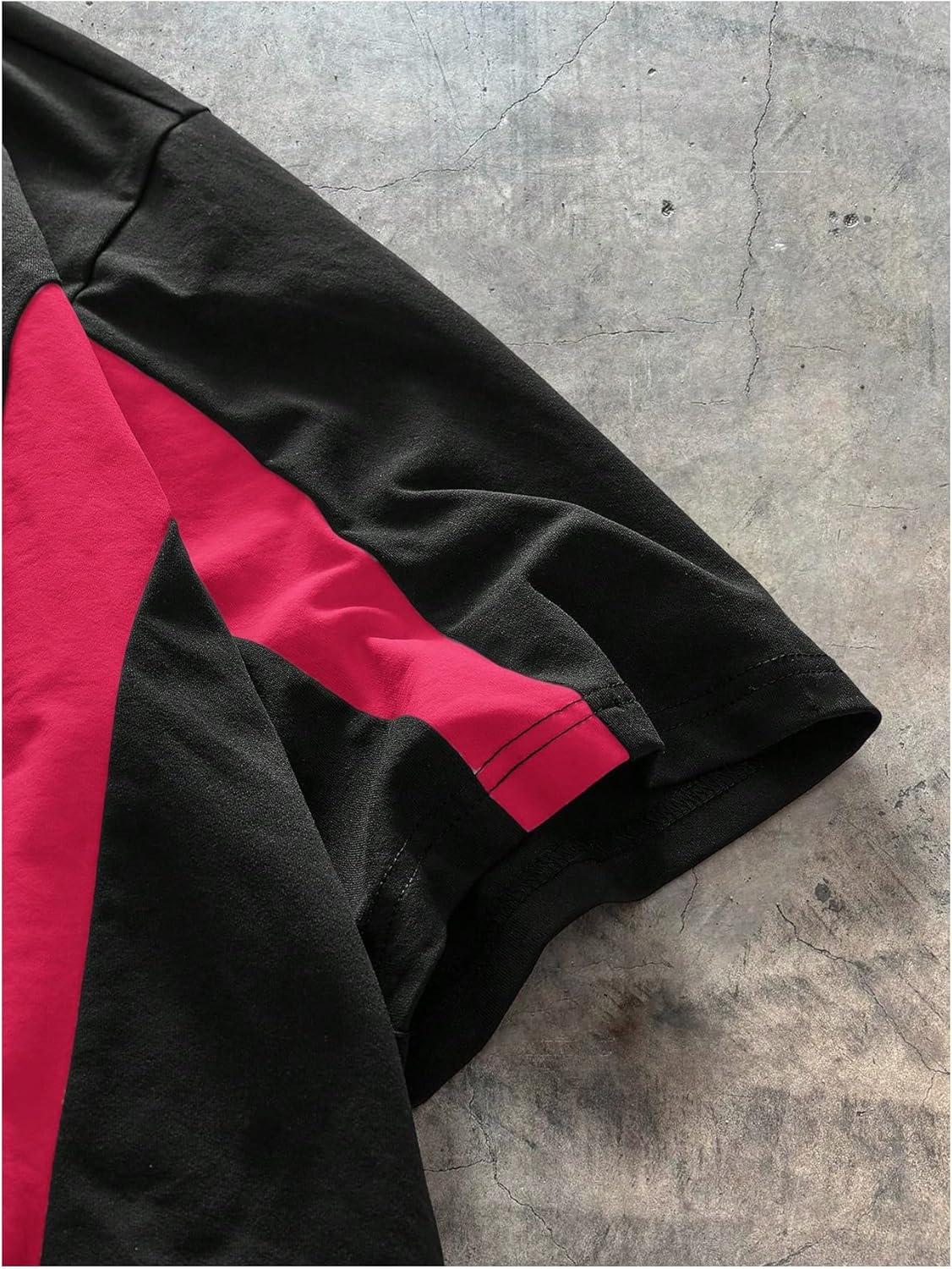 SOLY HUX Men’s Short Sleeve T Shirts Streetwear Color Block Graphic Tees Unisex Casual Summer Tops(Black and Red)