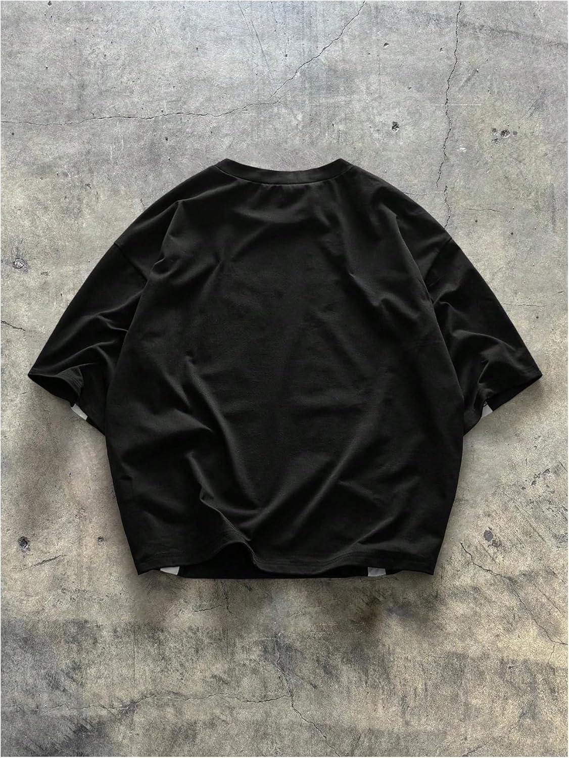 SOLY HUX Men’s Short Sleeve T Shirts Streetwear Color Block Graphic Tees Unisex Casual Summer Tops(Black Graphic)