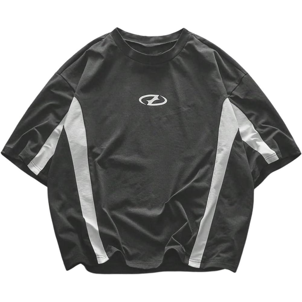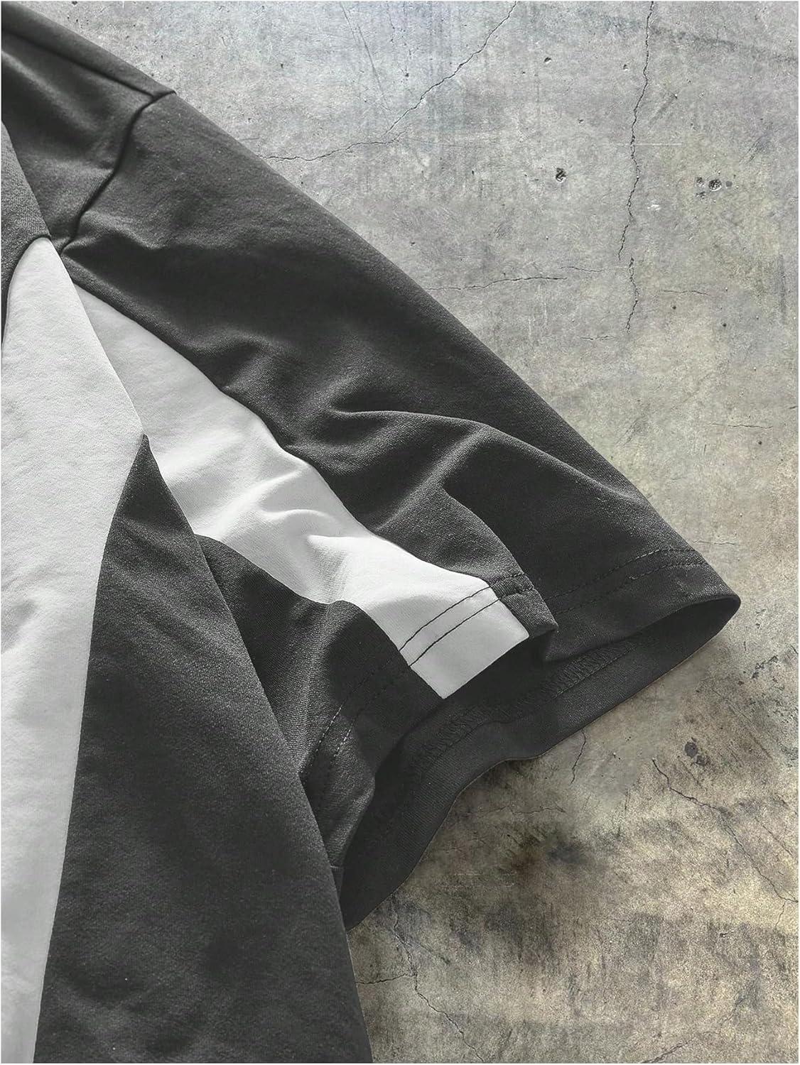 SOLY HUX Men’s Short Sleeve T Shirts Streetwear Color Block Graphic Tees Unisex Casual Summer Tops(Dark Grey Graphic)