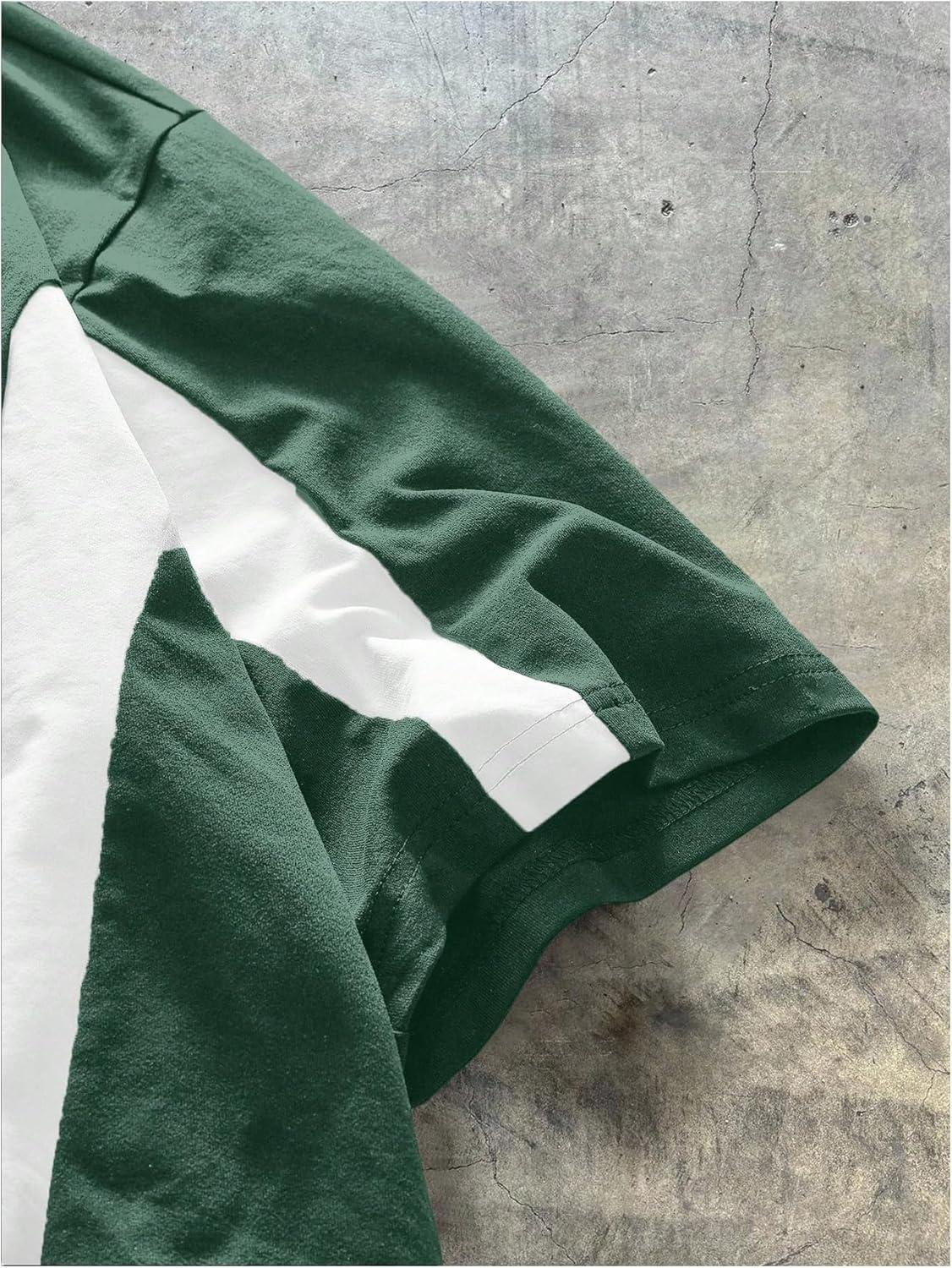 SOLY HUX Men’s Short Sleeve T Shirts Streetwear Color Block Graphic Tees Unisex Casual Summer Tops(Green Graphic)
