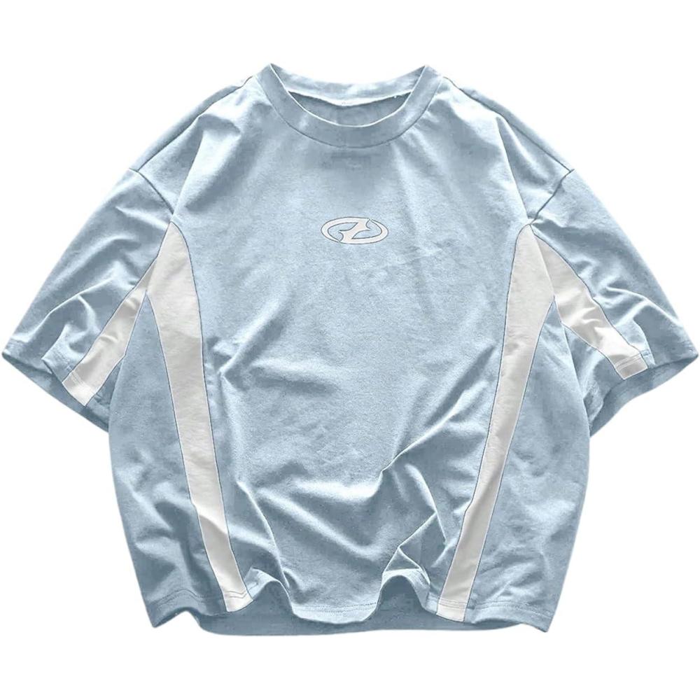 SOLY HUX Men’s Short Sleeve T Shirts Streetwear Color Block Graphic Tees Unisex Casual Summer Tops(Light Blue Graphic)