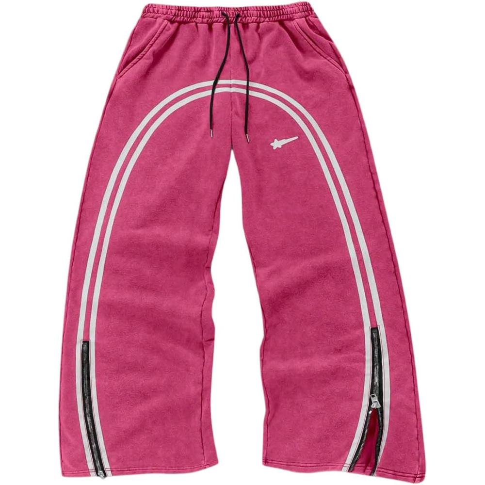 SOLY HUX Men’s Side Striped Sweatpants Drawstring Waist Zipper Baggy Wide Leg Pants Streetwear(Hot Pink)
