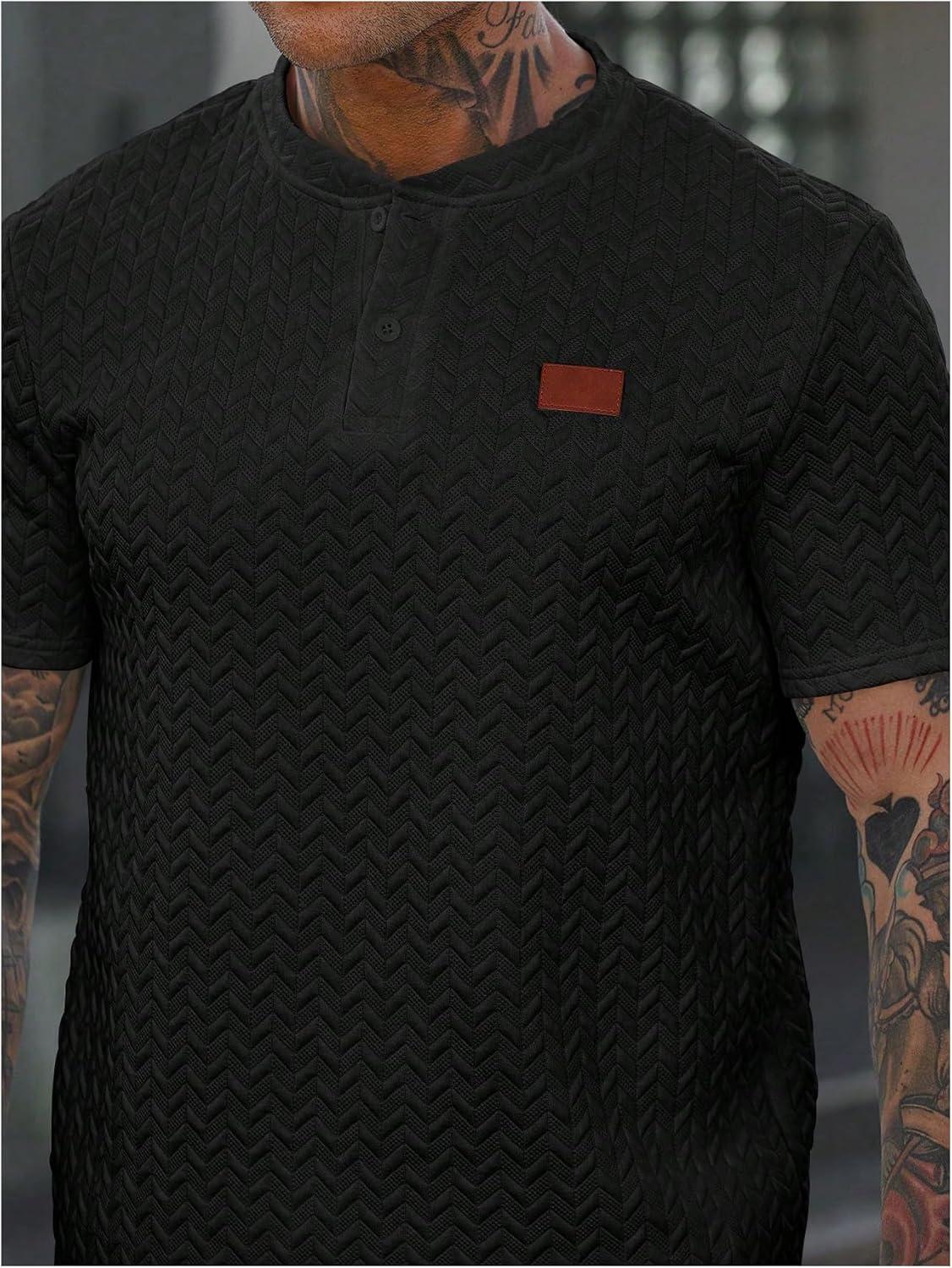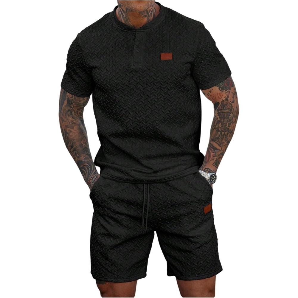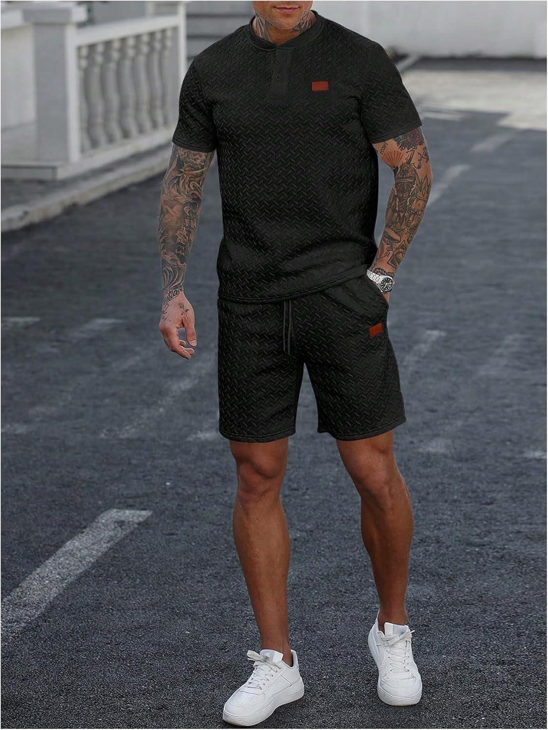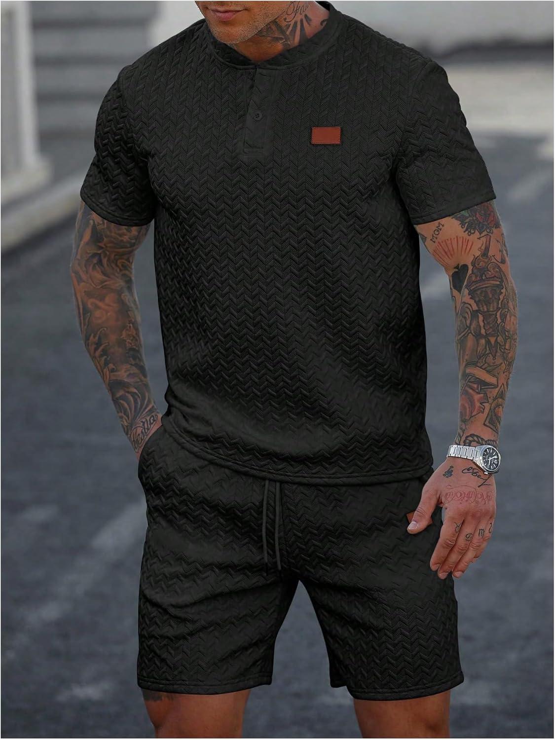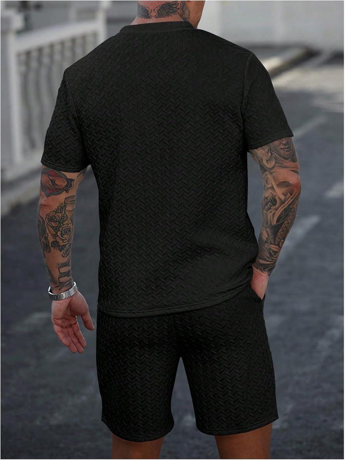 SOLY HUX Men’s Summer 2 Piece Outfit Textured T Shirt and Shorts Set Short Sleeve Casual Tracksuits(Plain Black)