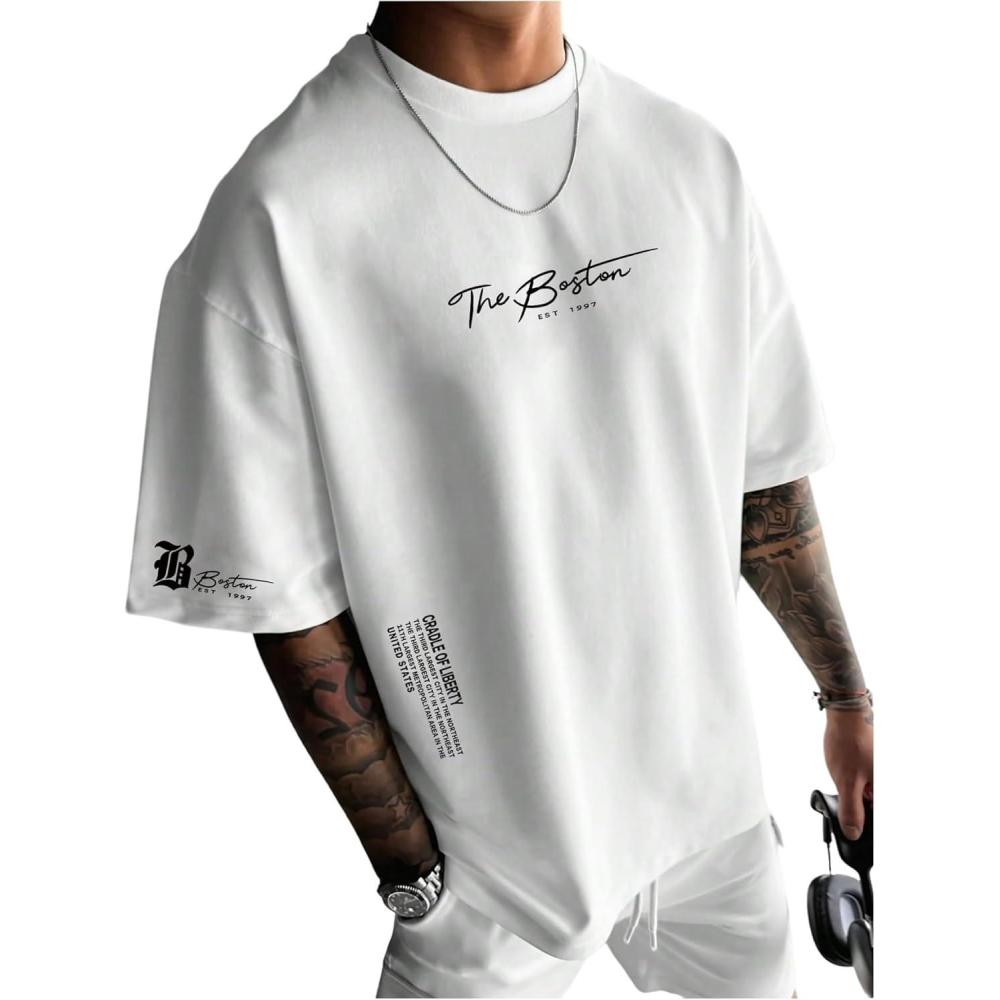 SOLY HUX Men’s Summer Letter Graphic Tees Casual Short Sleeve Crew Neck T Shirts(White Letter)