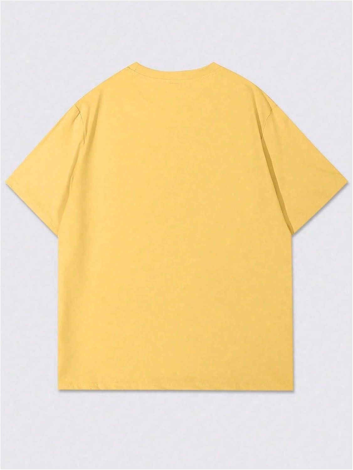 SOLY HUX Men’s Summer Letter Graphic Tees Casual Short Sleeve Crew Neck T Shirts(Yellow Letter)