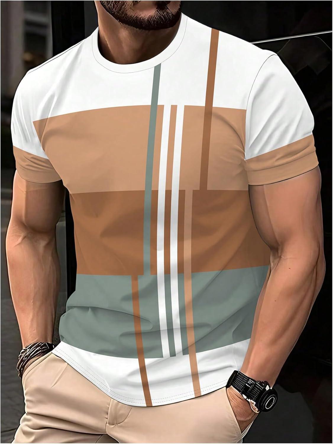 SOLY HUX Men’s Summer Striped Color Block Tees Casual Crew Neck Short Sleeve T Shirts(Multi Striped)