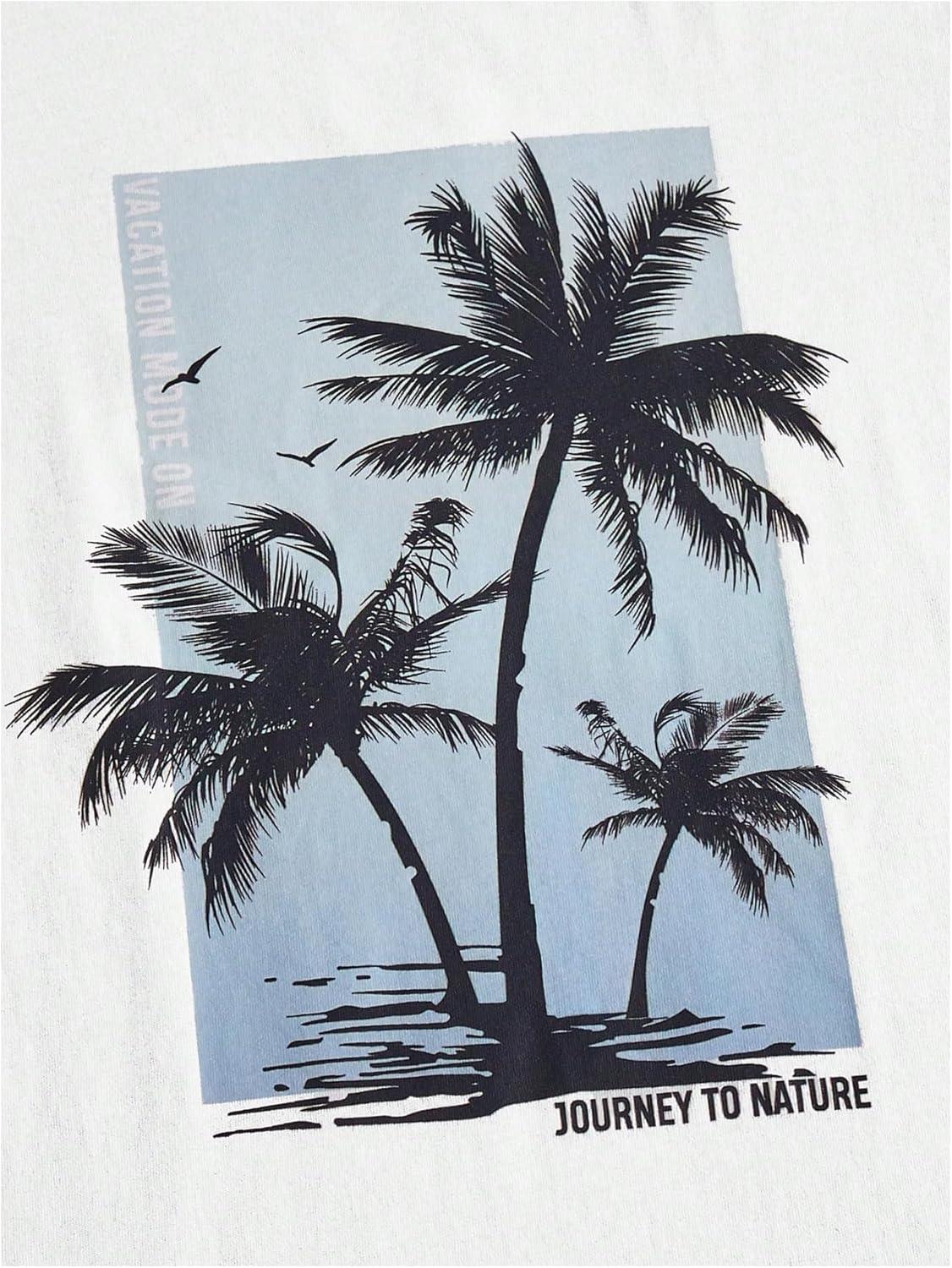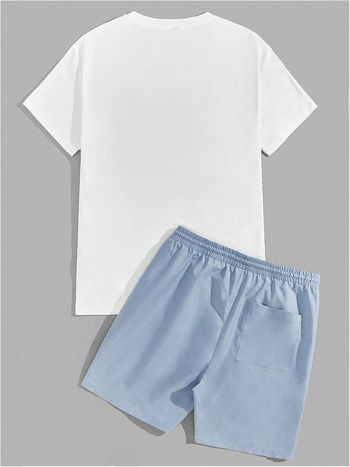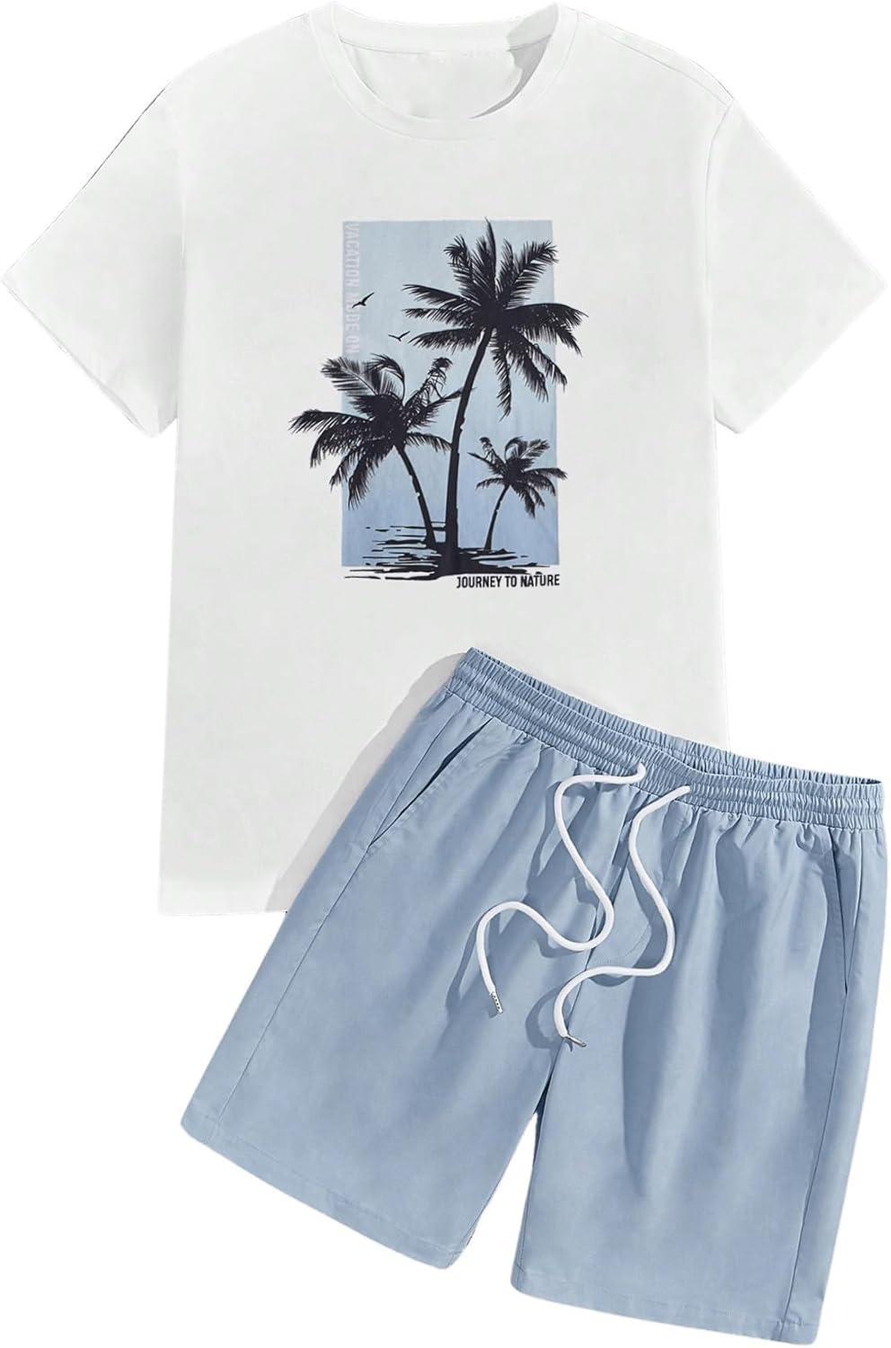 SOLY HUX Men’s Summer Tracksuit 2 Piece Beach Outfit Tropical Print Tee and Shorts Set(Dusty Blue and White)