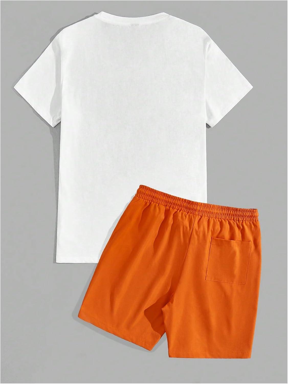 SOLY HUX Men’s Summer Tracksuit 2 Piece Beach Outfit Tropical Print Tee and Shorts Set(White and Orange)