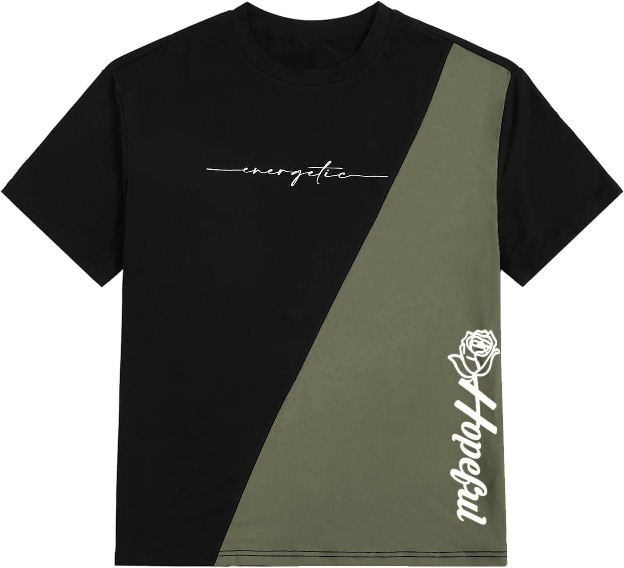SOLY HUX Men’s T Shirts Letter Graphic Tees Crew Neck Short Sleeve Summer Tops(Black and Green)