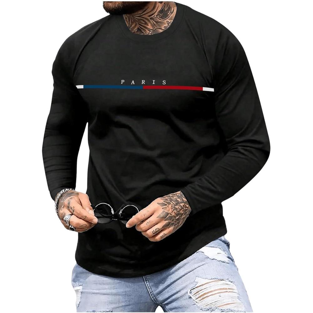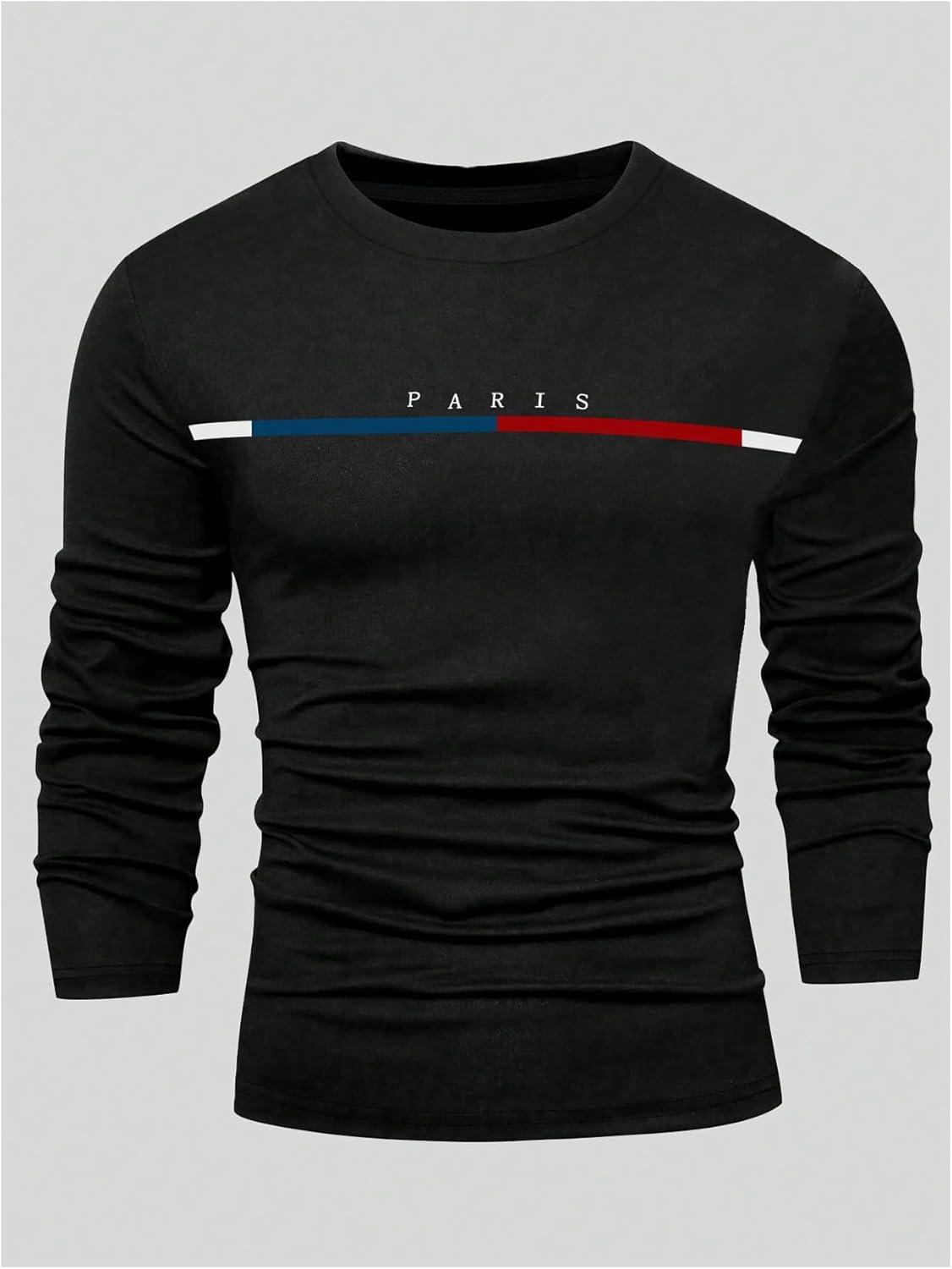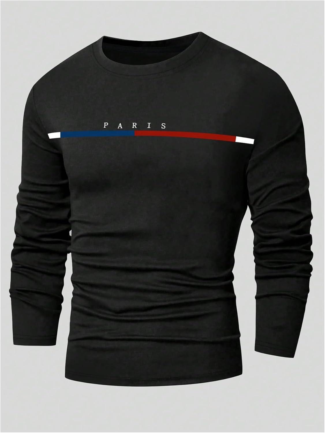 SOLY HUX Men’s T Shirts Letter Print Long Sleeve Round Neck Tee Tops(Black Letter)