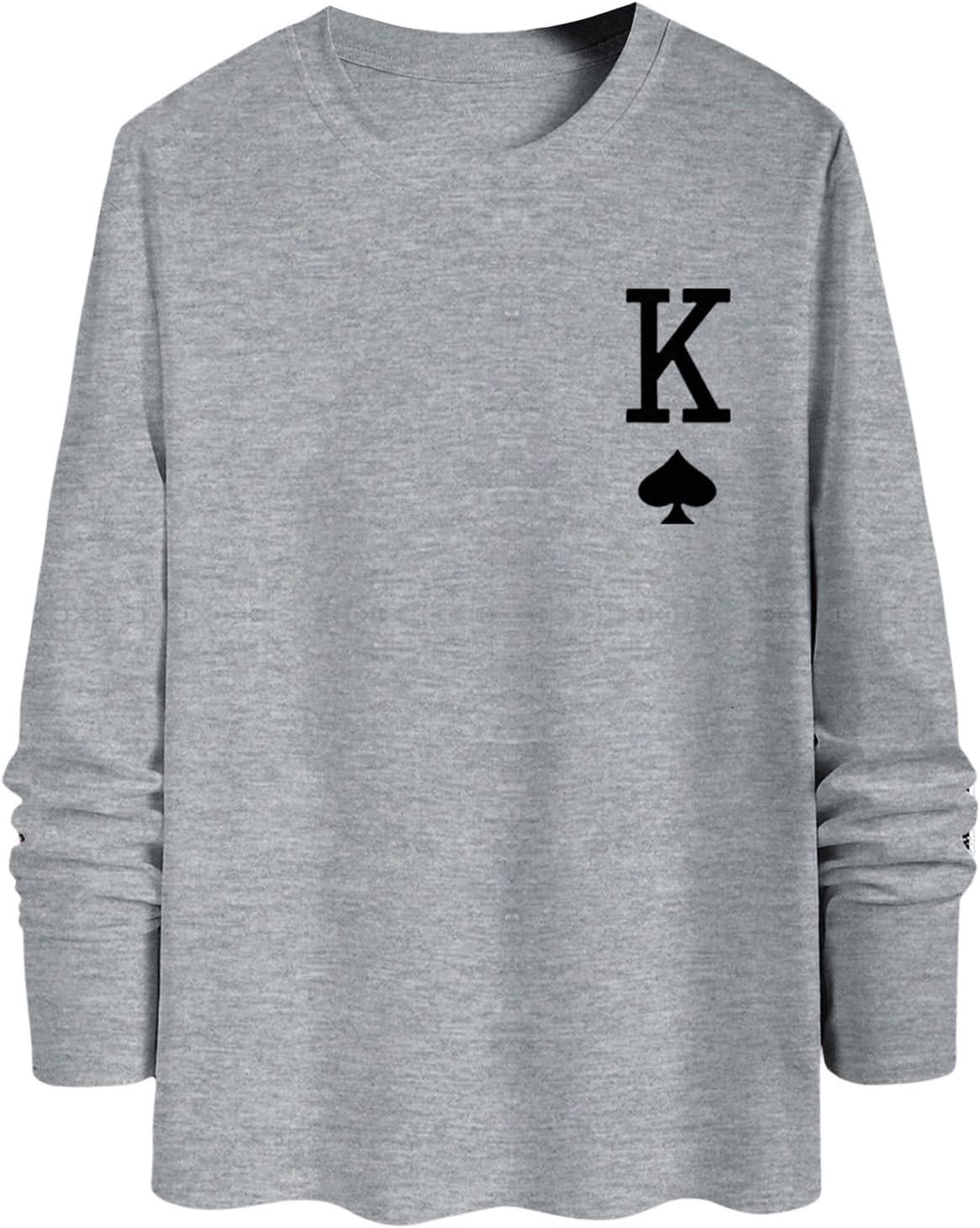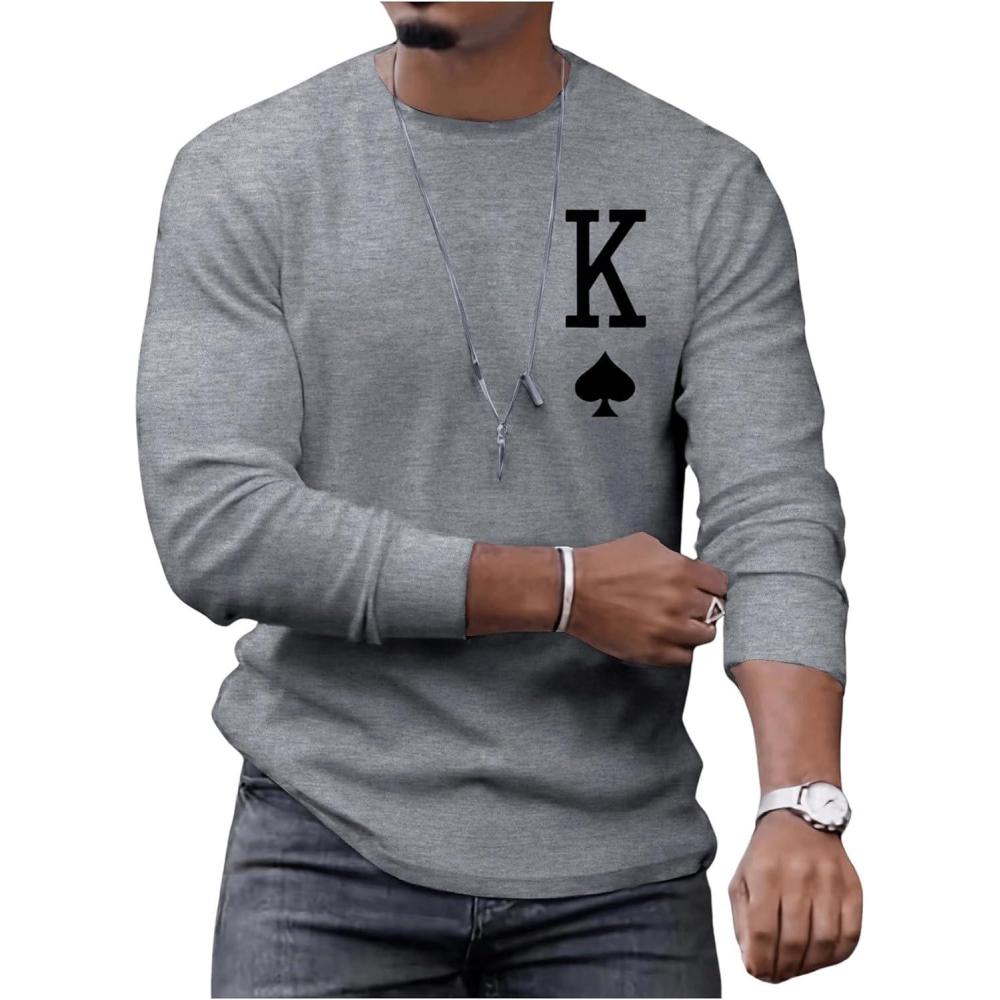 SOLY HUX Men’s T Shirts Playing Card Graphic Print Long Sleeve Round Neck Tee Tops(Grey Letter)