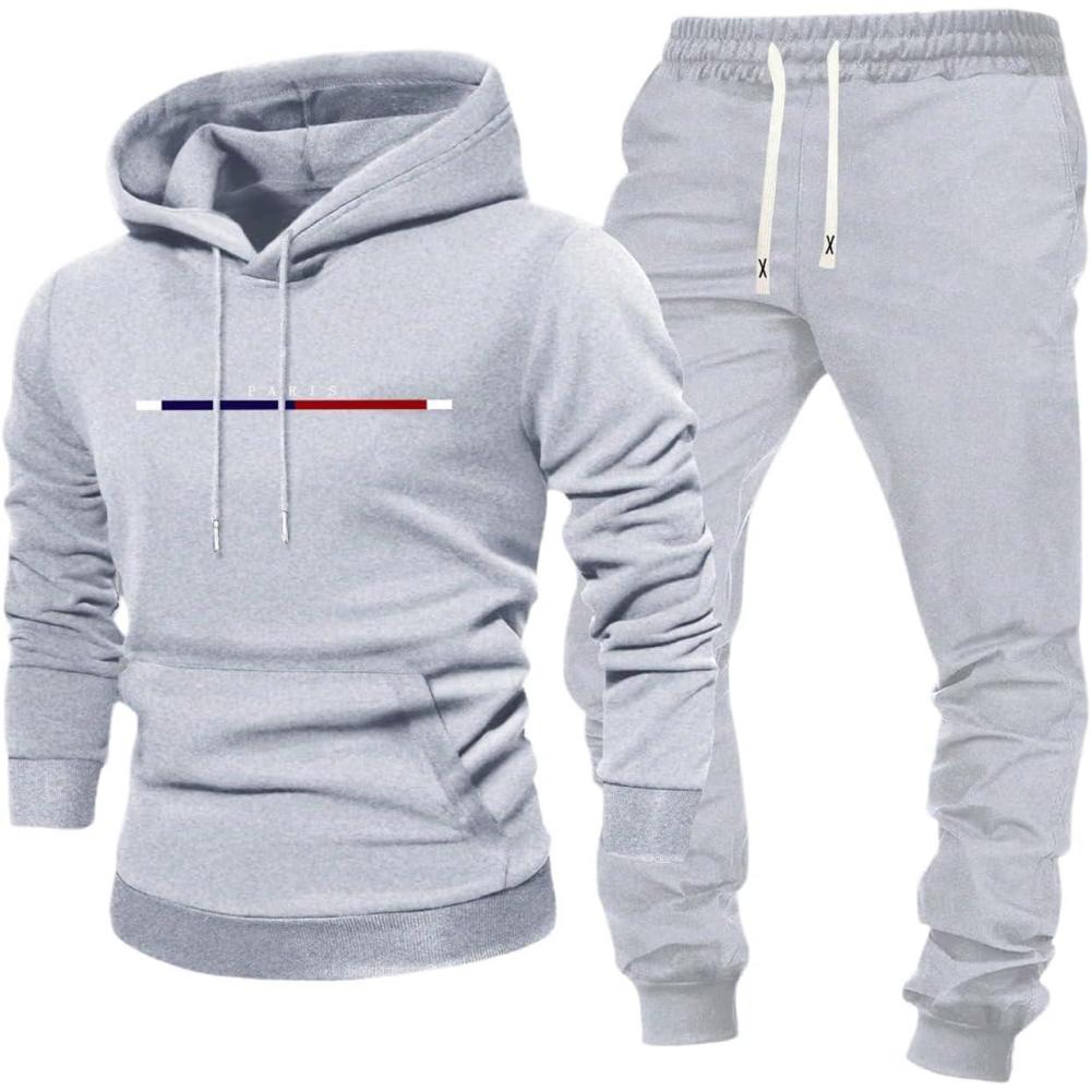 SOLY HUX Men’s Tracksuit Hooded Sweatshirt and Jogger Pants Hiking Outdoor 2 Piece Outfits(Light Grey)