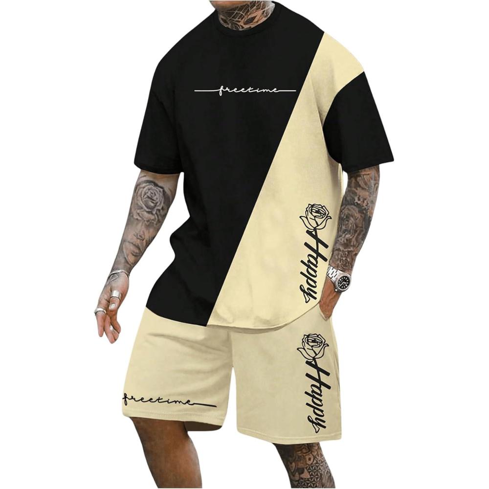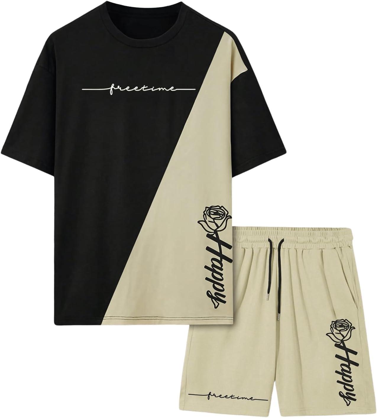 Be the first to review “SOLY HUX Men’s Tracksuits Color Block Print Short Sleeve Tee and Drawstring Shorts Summer 2 Piece Sets(Black Beige Multi)”