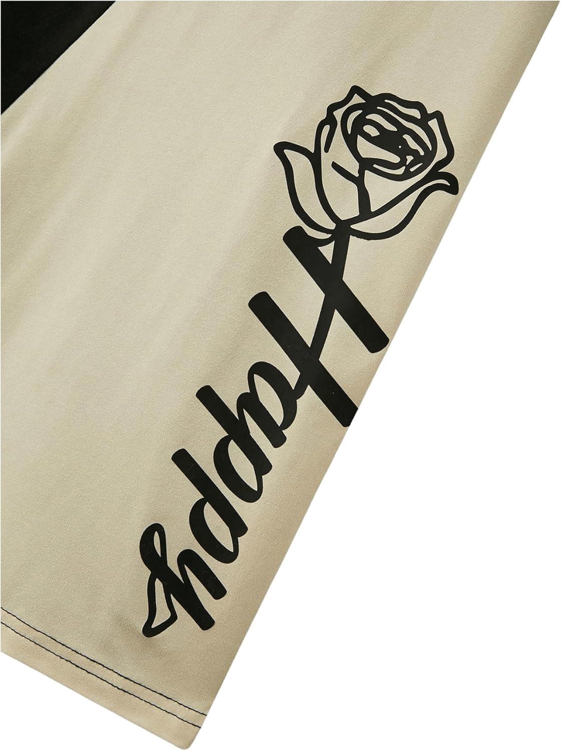 SOLY HUX Men’s Tracksuits Color Block Print Short Sleeve Tee and Drawstring Shorts Summer 2 Piece Sets(Black and White)