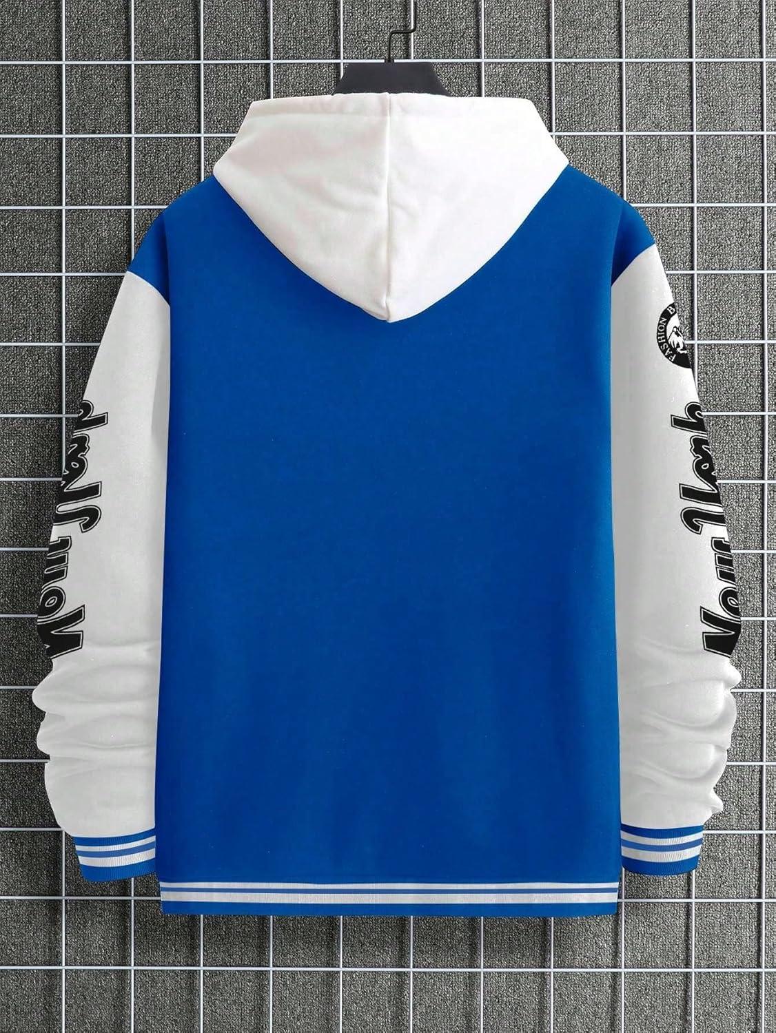 SOLY HUX Men’s Varsity Jacket Color Block Letter Graphic Long Sleeve Baseball Jacket Bomber Coat(Blue and White Letter Print)