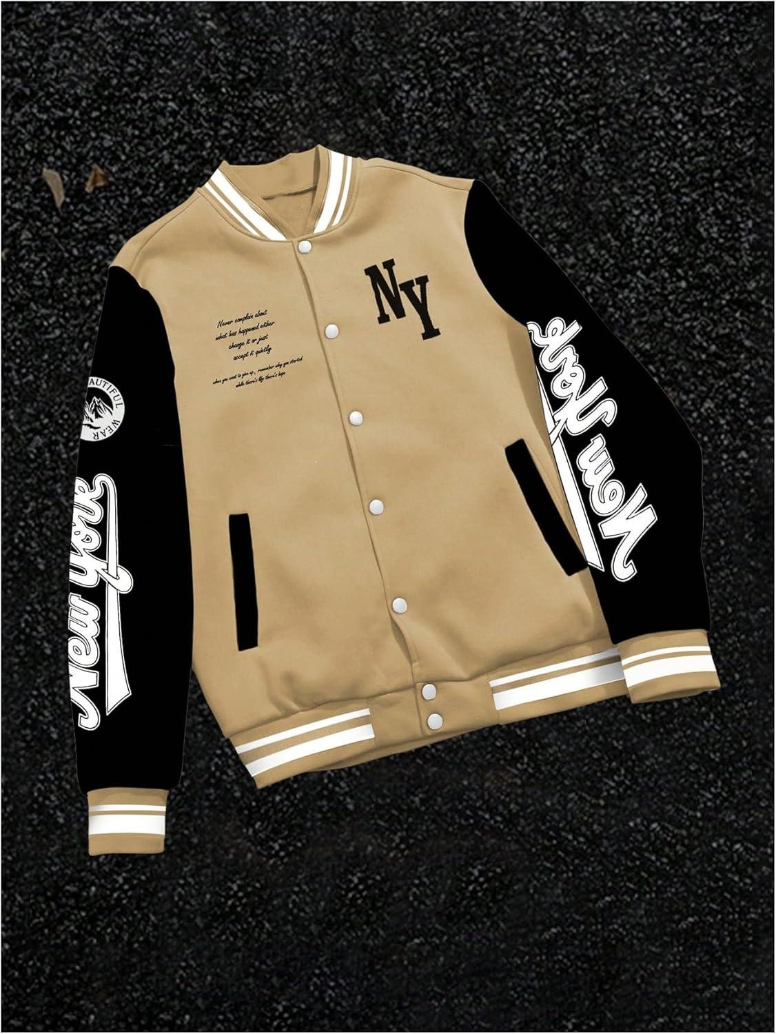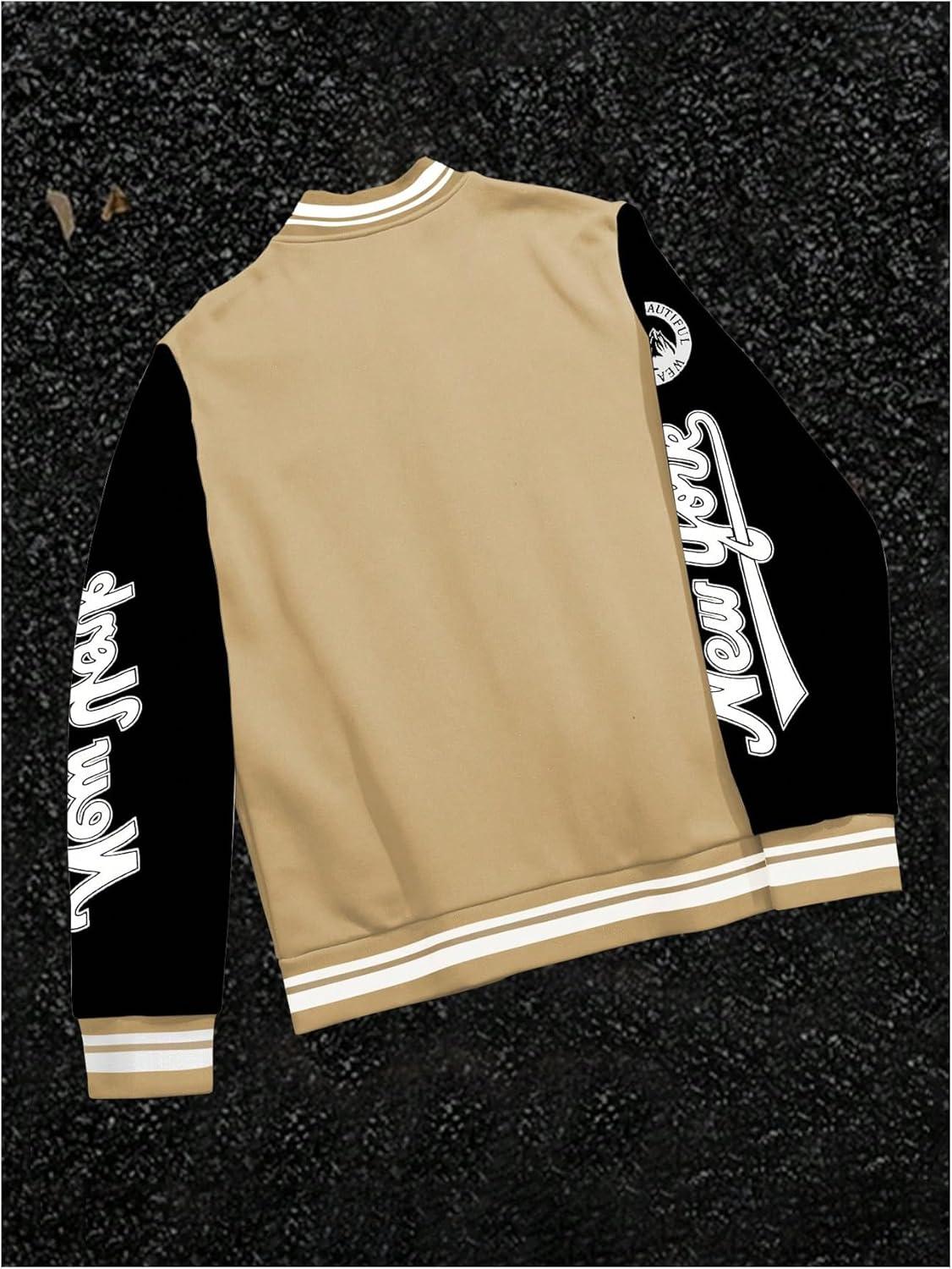 SOLY HUX Men’s Varsity Jacket Color Block Letter Graphic Long Sleeve Baseball Jacket Bomber Coat(Multicolor Letter Graphic)