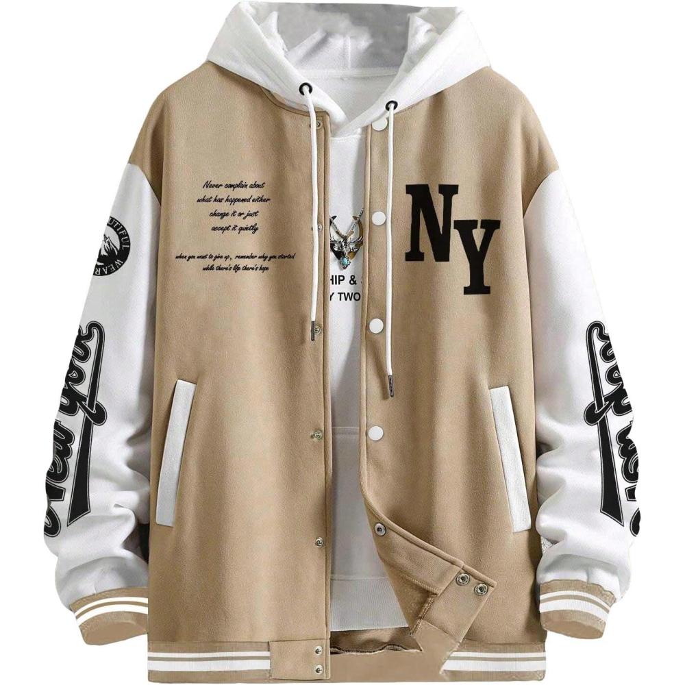 SOLY HUX Men’s Varsity Jacket Color Block Letter Graphic Long Sleeve Baseball Jacket Bomber Coat(Multicoloured Letter Printed)