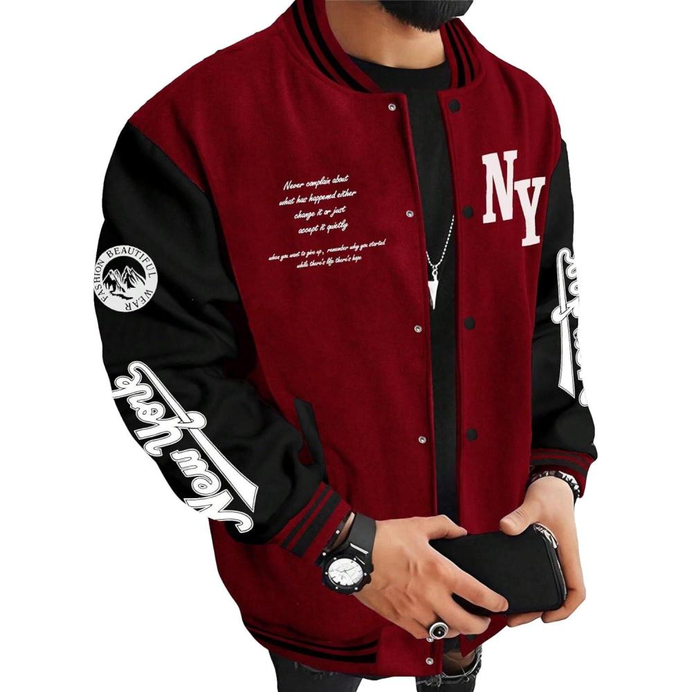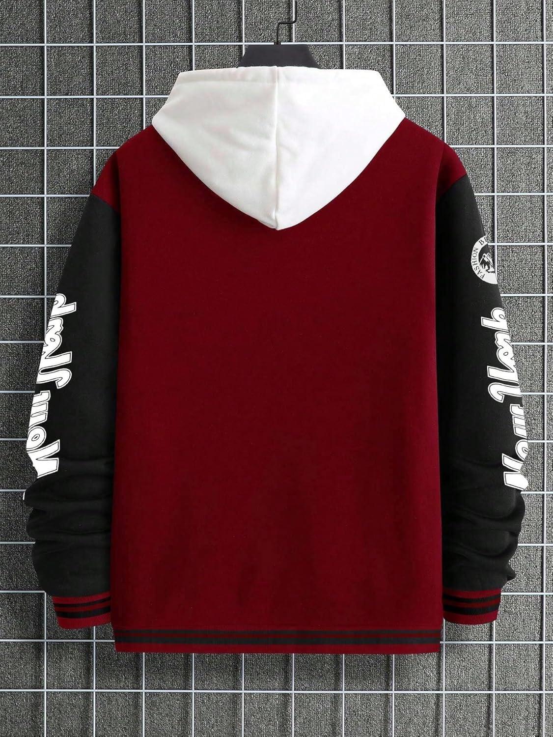 SOLY HUX Men’s Varsity Jacket Color Block Letter Graphic Long Sleeve Baseball Jacket Bomber Coat(Red Letter)