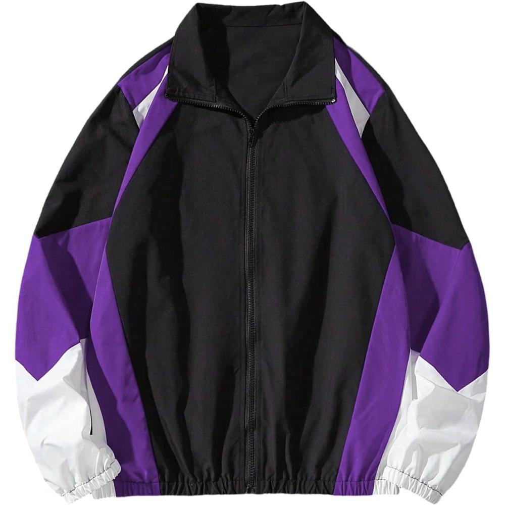 SOLY HUX Men’s Varsity Jacket Zipper Color Block Windbreaker Jackets Long Sleeve Coats Streetwear(Purple Multi)
