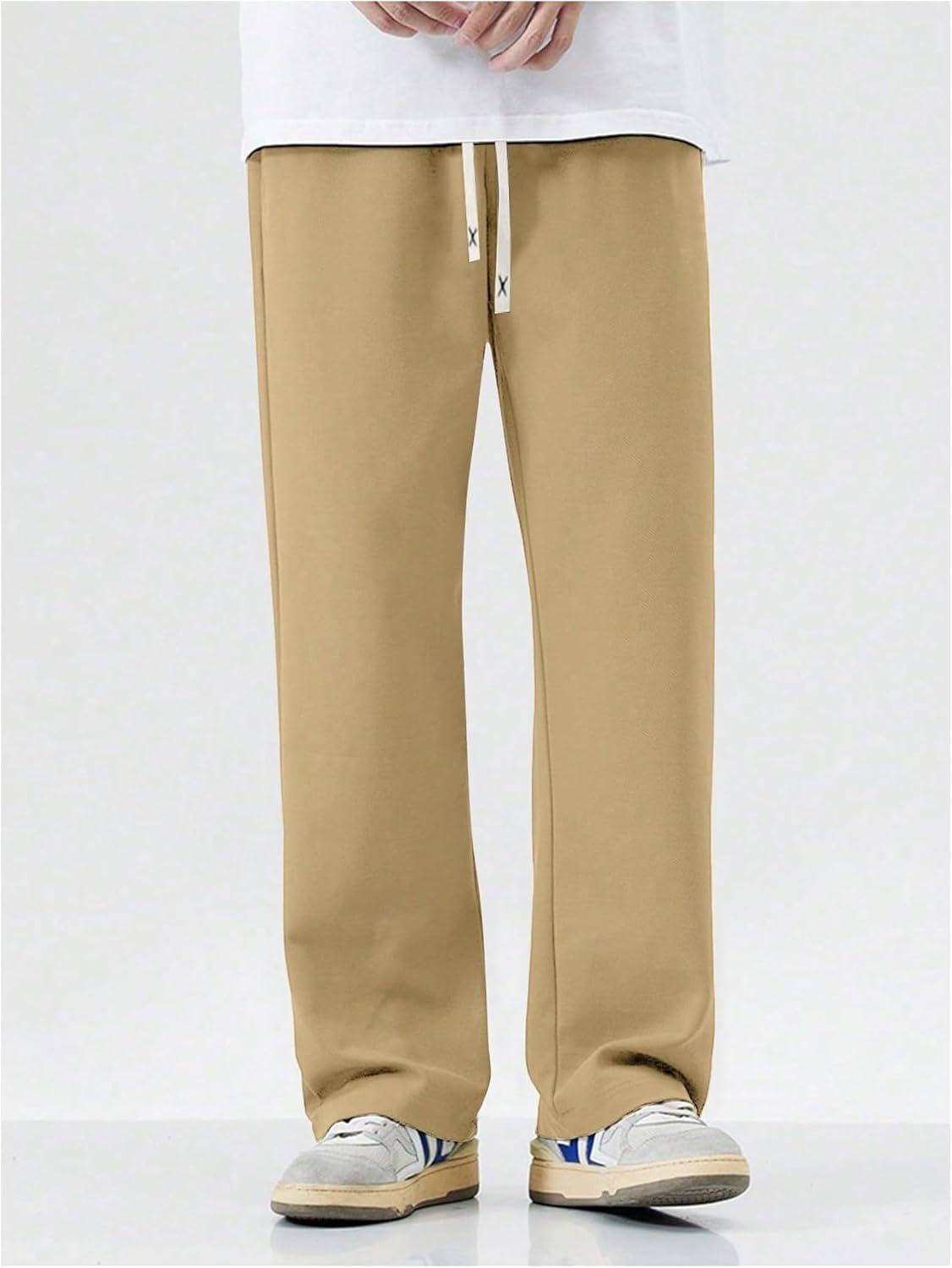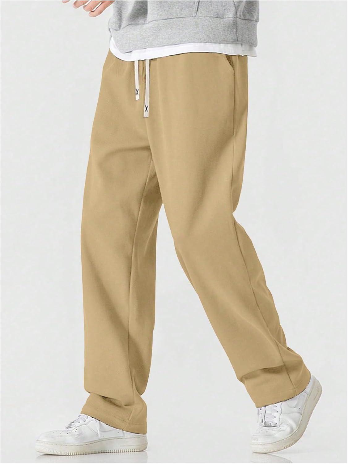SOLY HUX Men’s Wide Leg Baggy Sweatpants Drawstring Elastic Waist Athletic Trousers with Pockets Streetwear(Pure Brown)