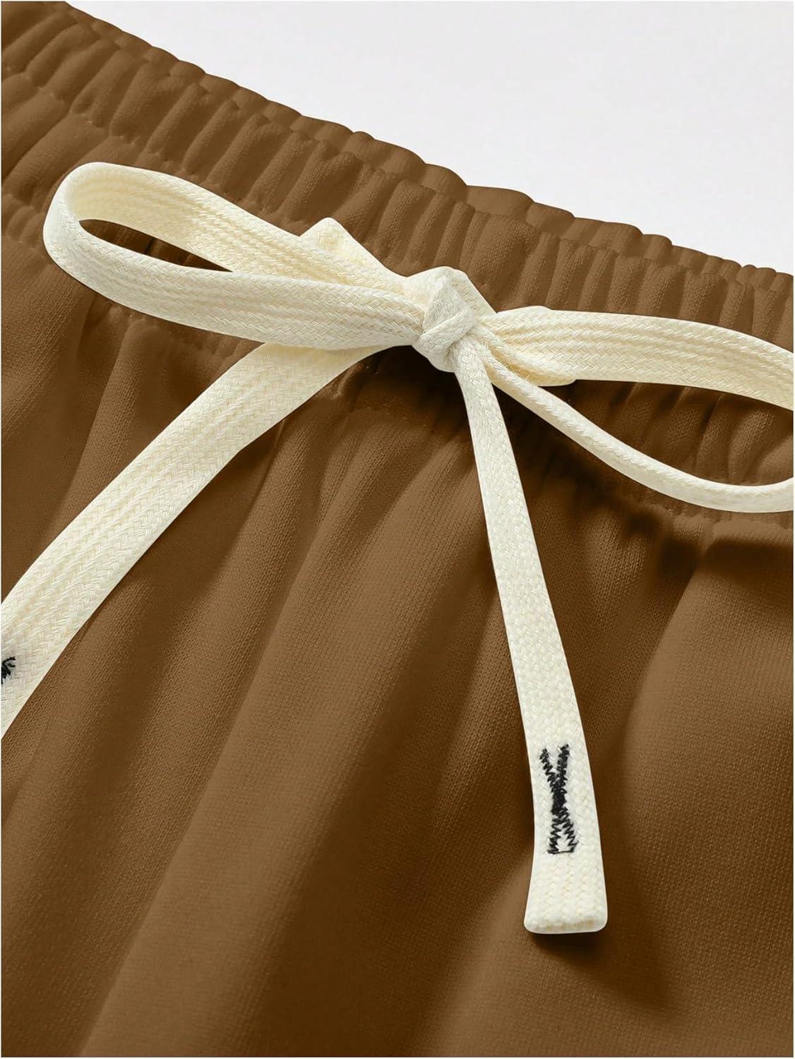 SOLY HUX Men’s Wide Leg Baggy Sweatpants Drawstring Elastic Waist Athletic Trousers with Pockets Streetwear(Pure Brown)