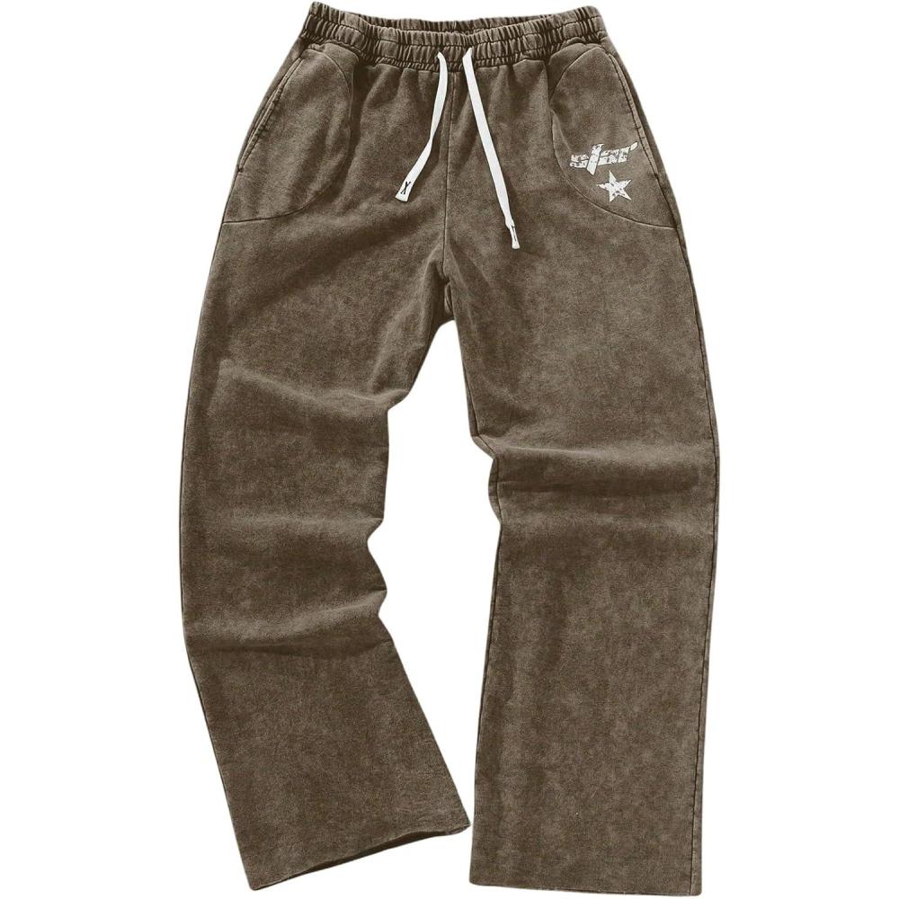 SOLY HUX Men’s Y2k Baggy Sweatpants Straight Leg Drawstring Elastic Waist Hip Hop Casual Pants Streetwear(Brown Star)
