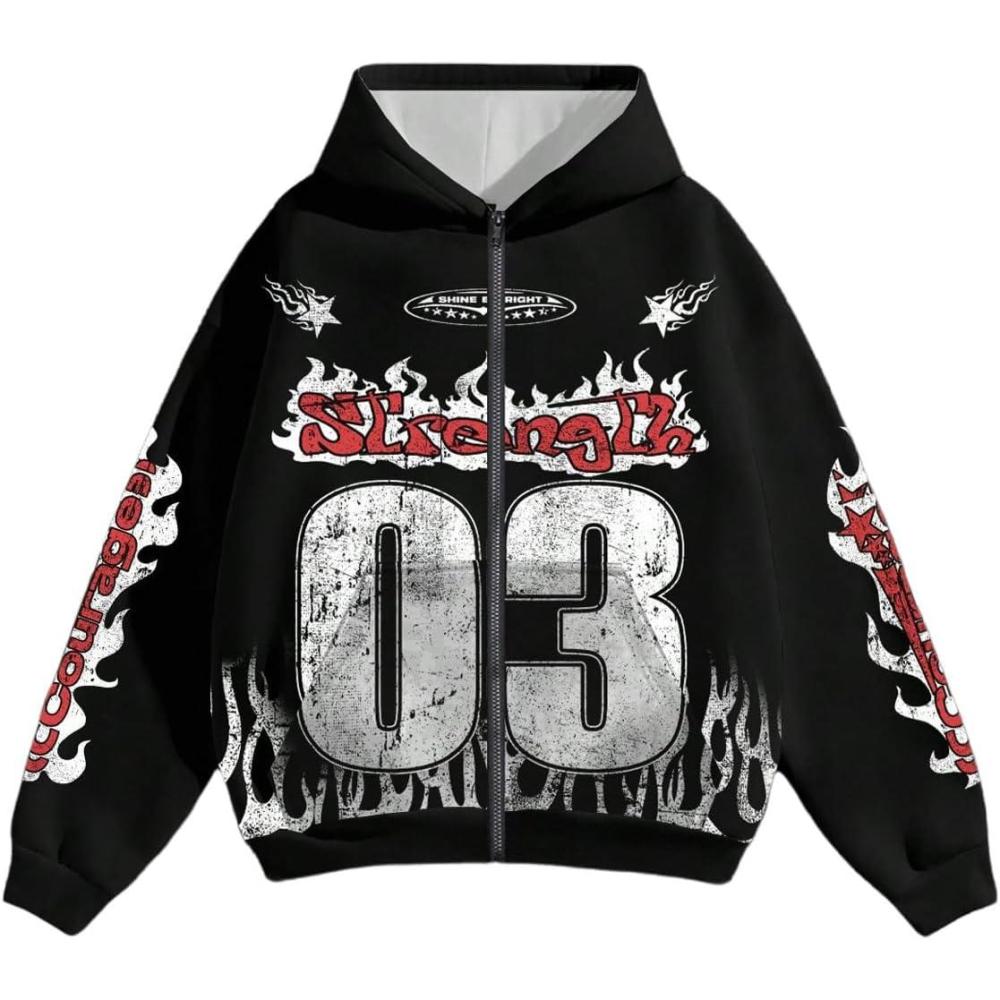 SOLY HUX Men’s Y2k Number Graphic Zip Up Hoodie Sweatshirt Gothic Long Sleeve Hooded Casual Jacket Streetwear(Black Letter)