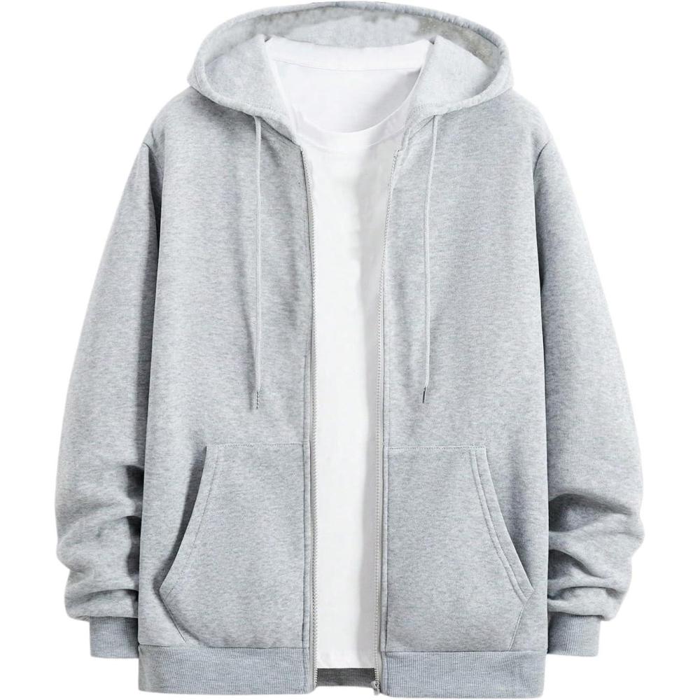 SOLY HUX Men’s Zip Up Hoodies Classic Hooded Sweatshirt Jacket with Pocket Fall Outfit(Plain Grey)