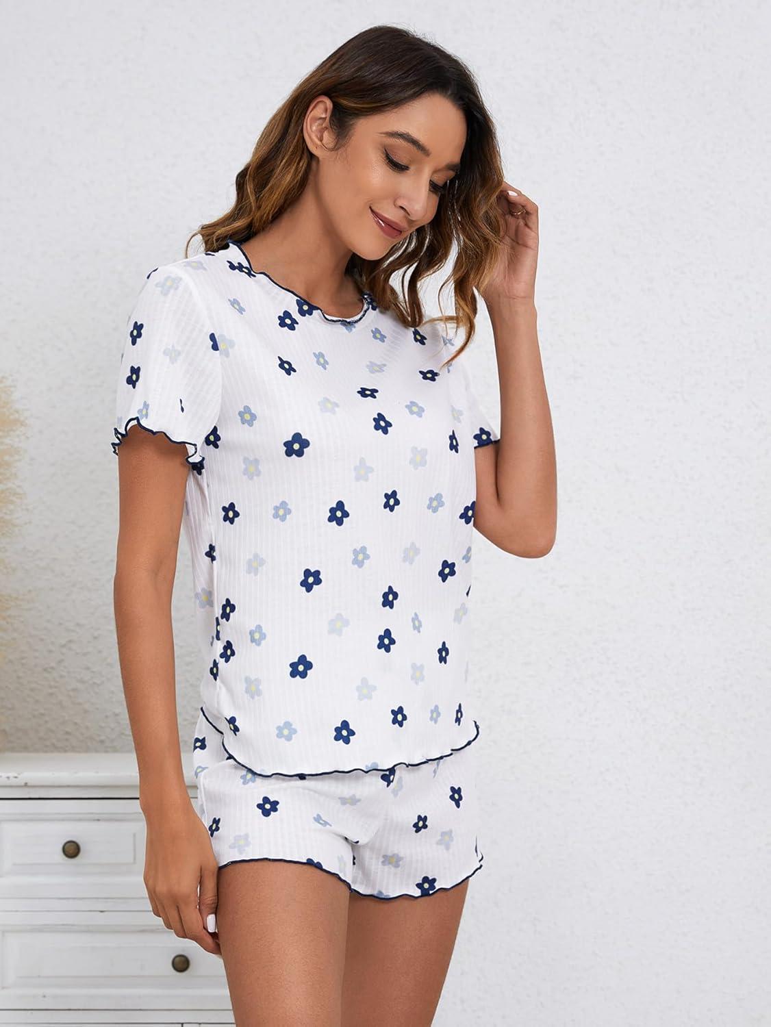 SOLY HUX Pajama Set for Women Cute Print Short Sleeve Tee and Shorts Lounge Sleepwear(Ditsy Floral Multicoloured)