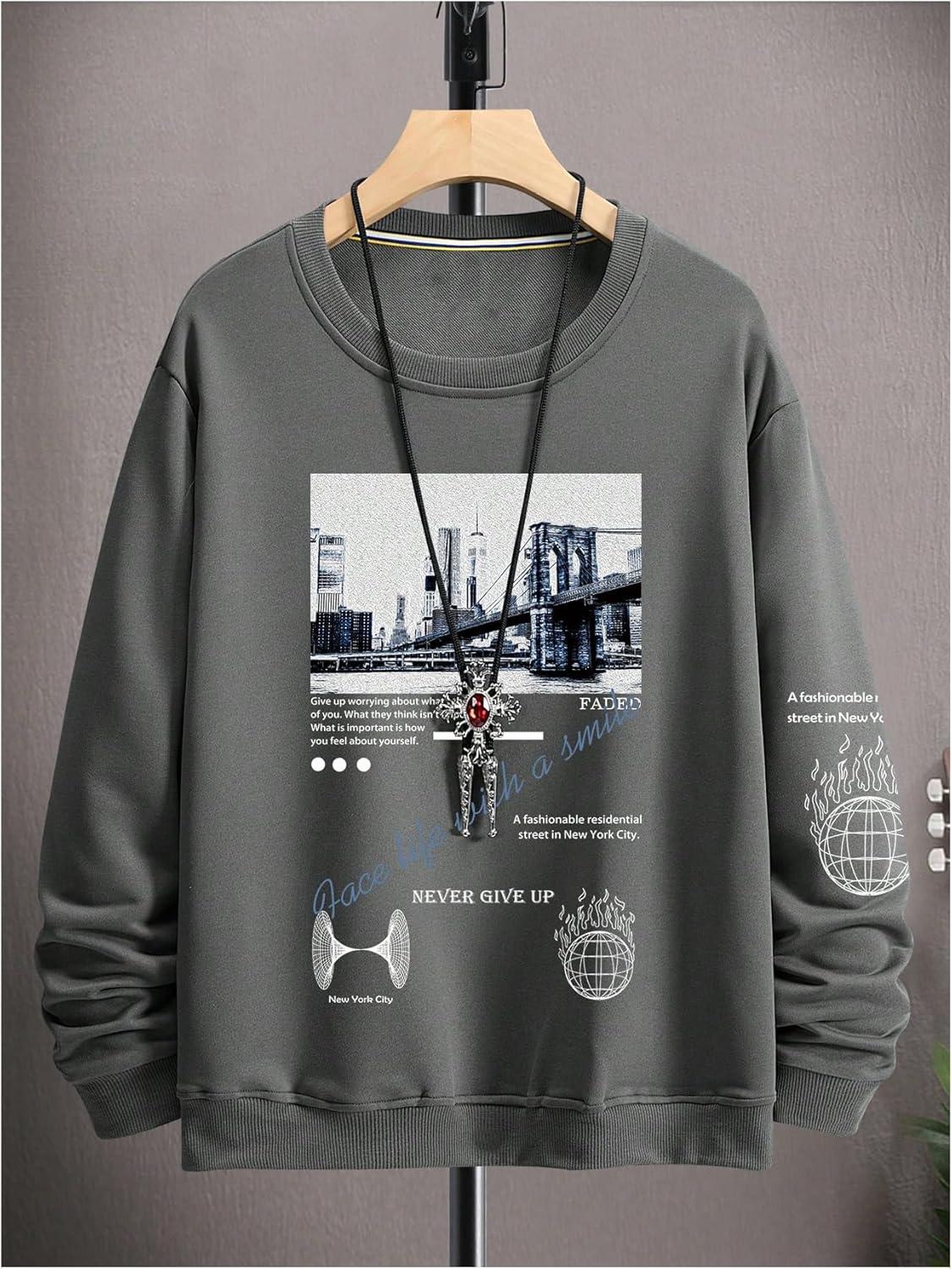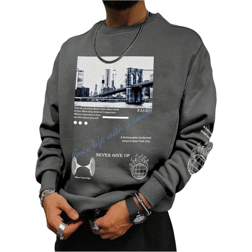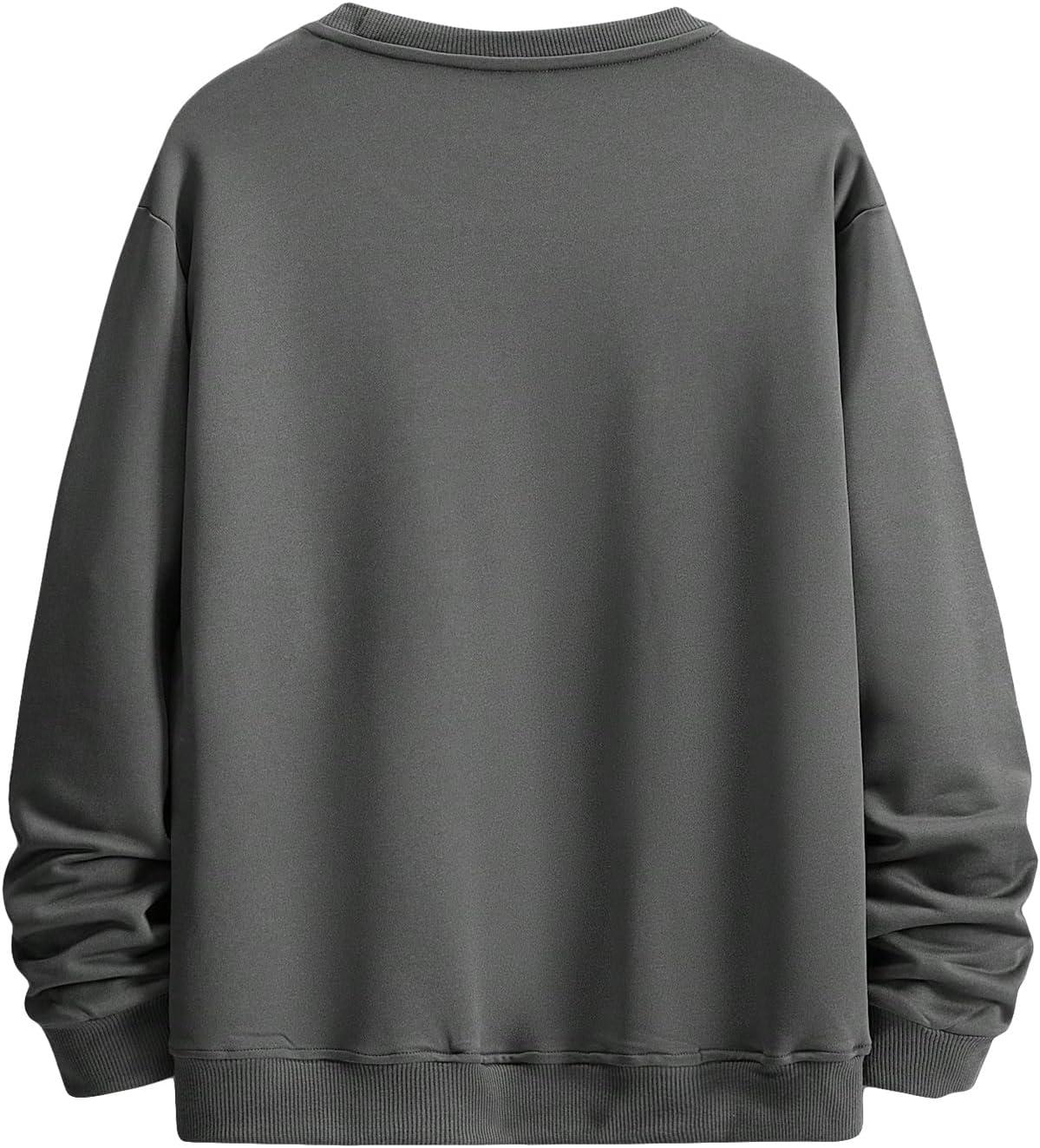 SOLY HUX Sweatshirts for Men Letter Graphic Crew Neck Long Sleeve Drop Shoulder Pullover Top(Grey Graphic)