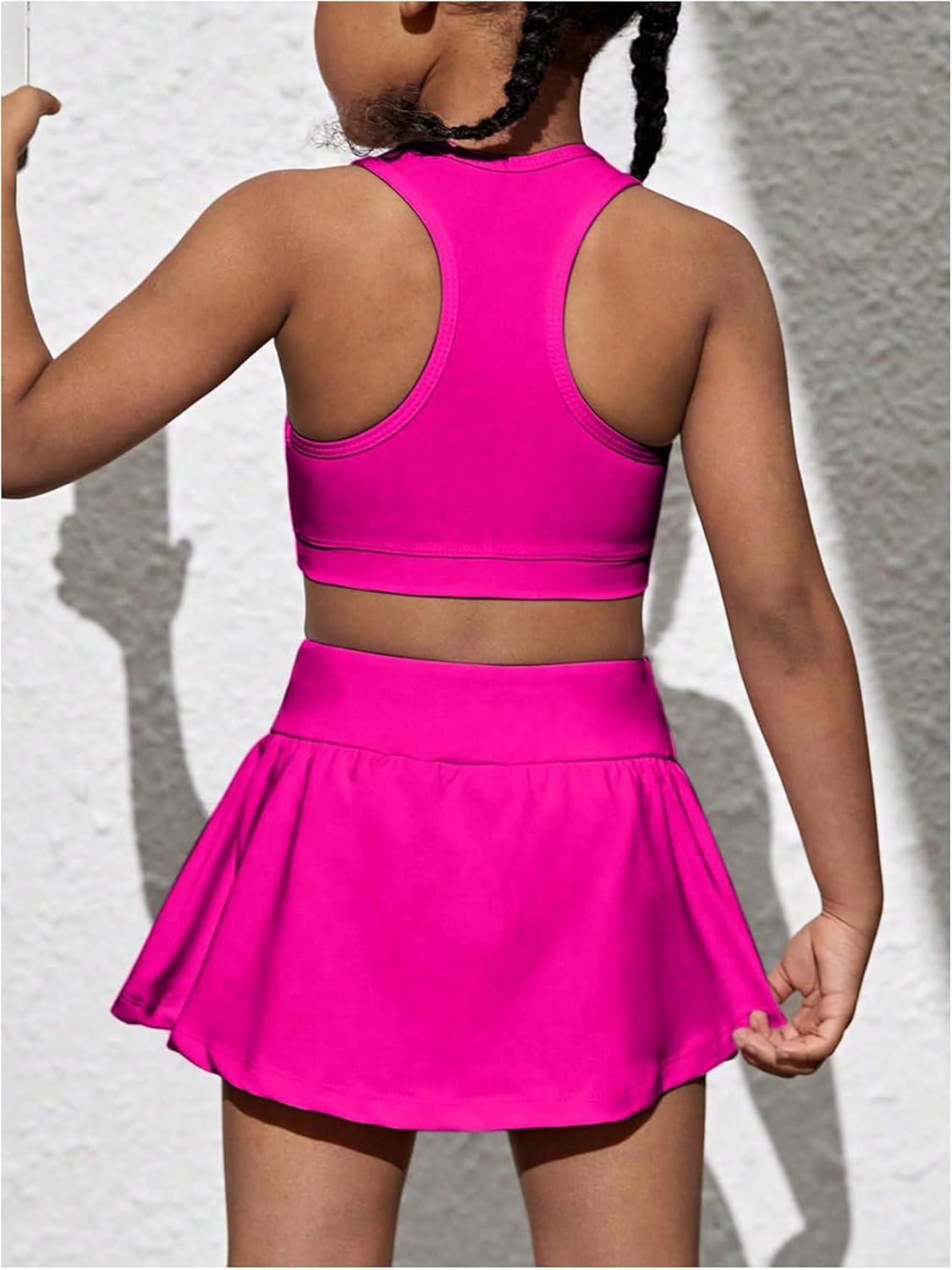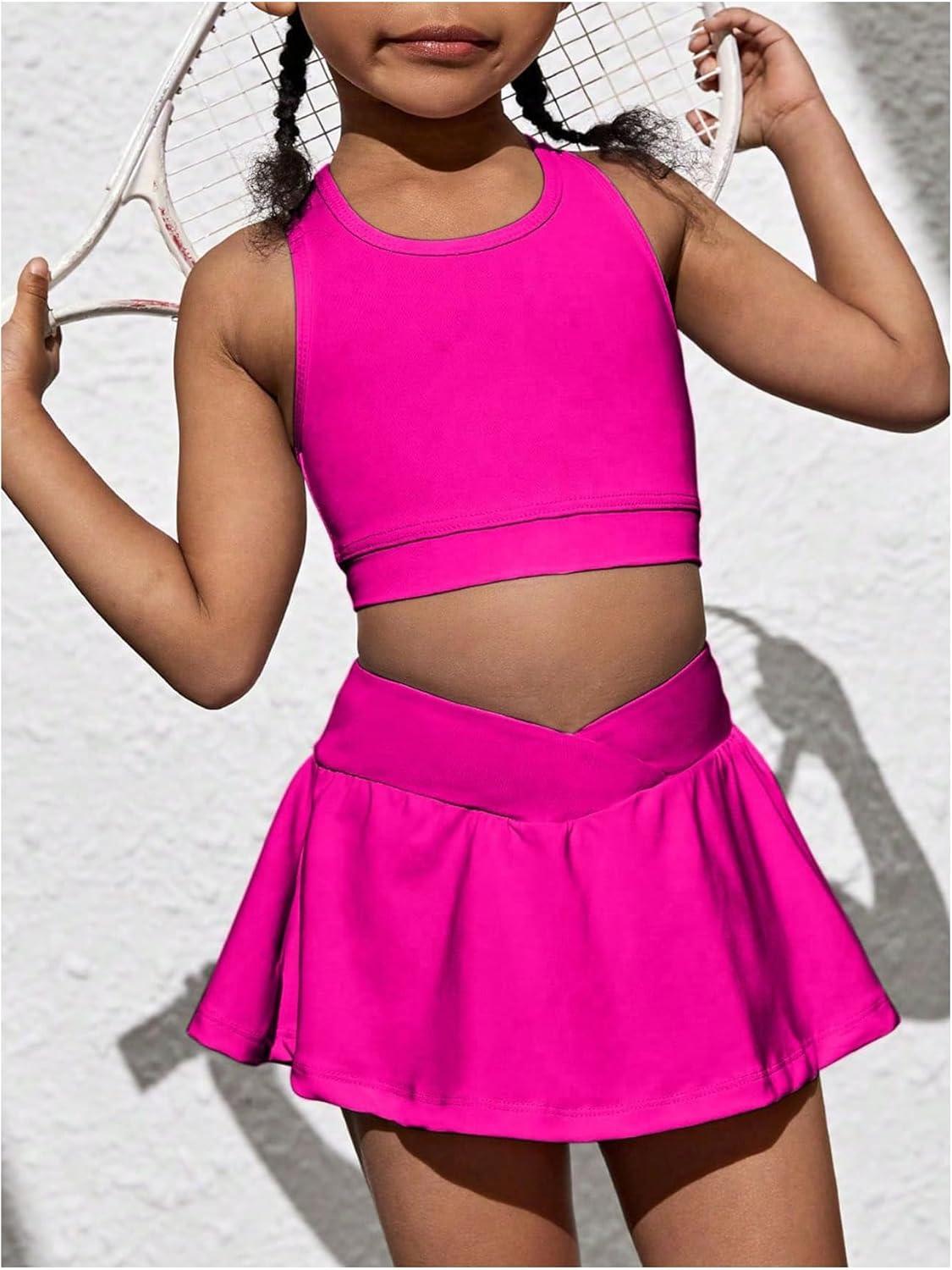 SOLY HUX Toddler Girl’s 2 Piece Workout Outfits Lightweight Crop Tank Tops and Skort Athletic Set(Plain Hotpink)