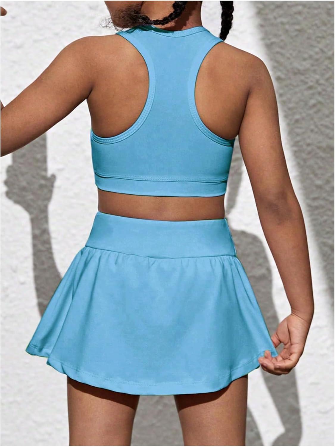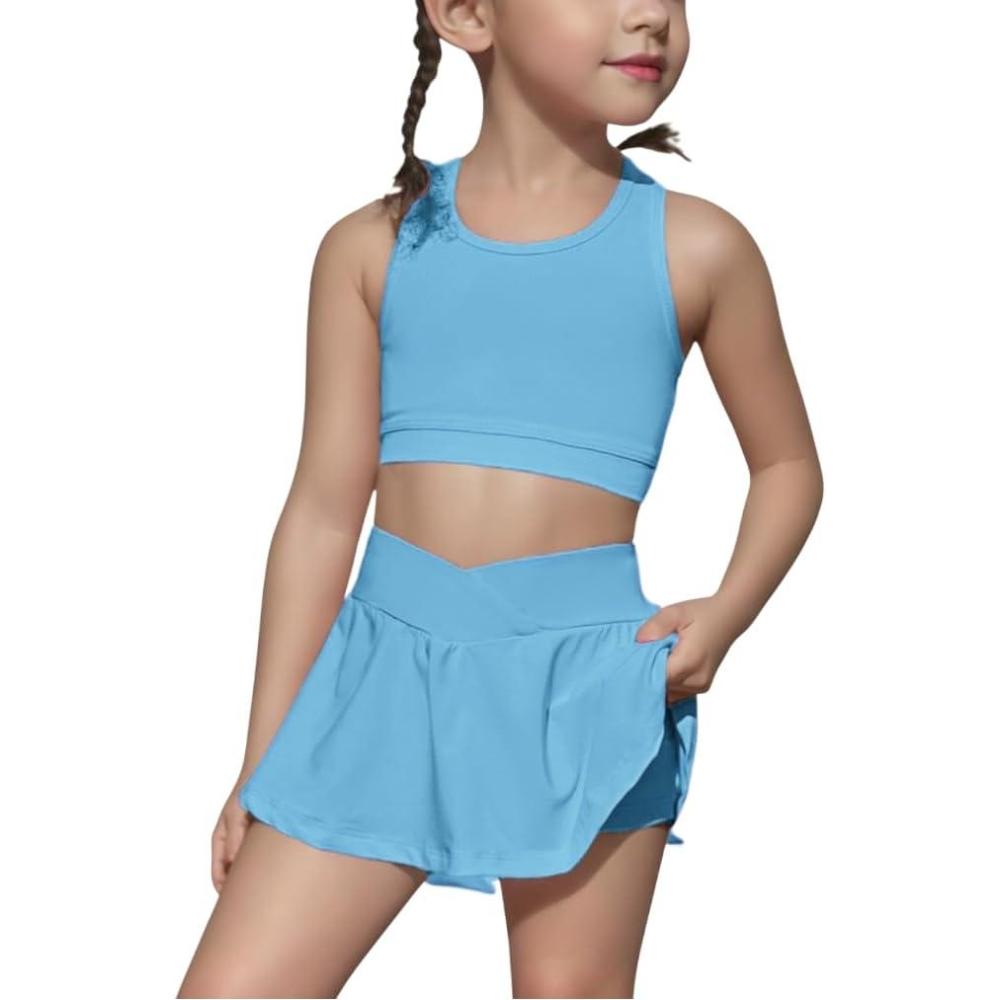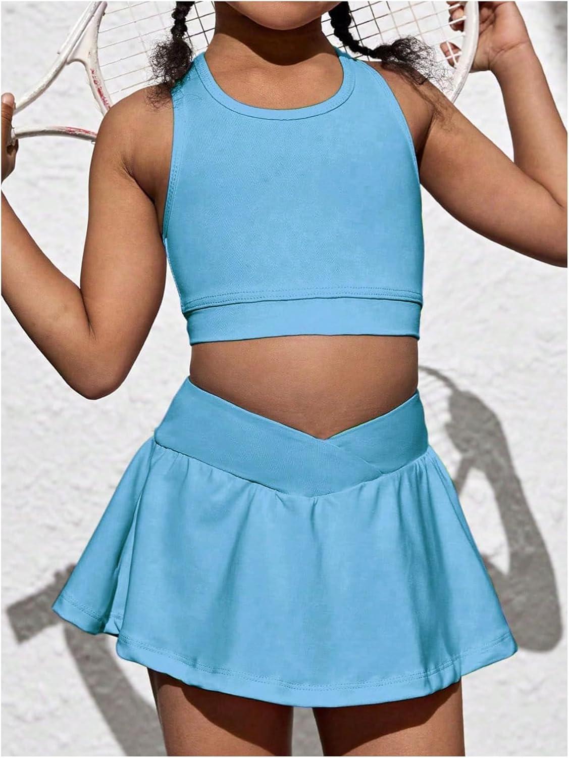 SOLY HUX Toddler Girl’s 2 Piece Workout Outfits Lightweight Crop Tank Tops and Skort Athletic Set(Plain Light Blue)