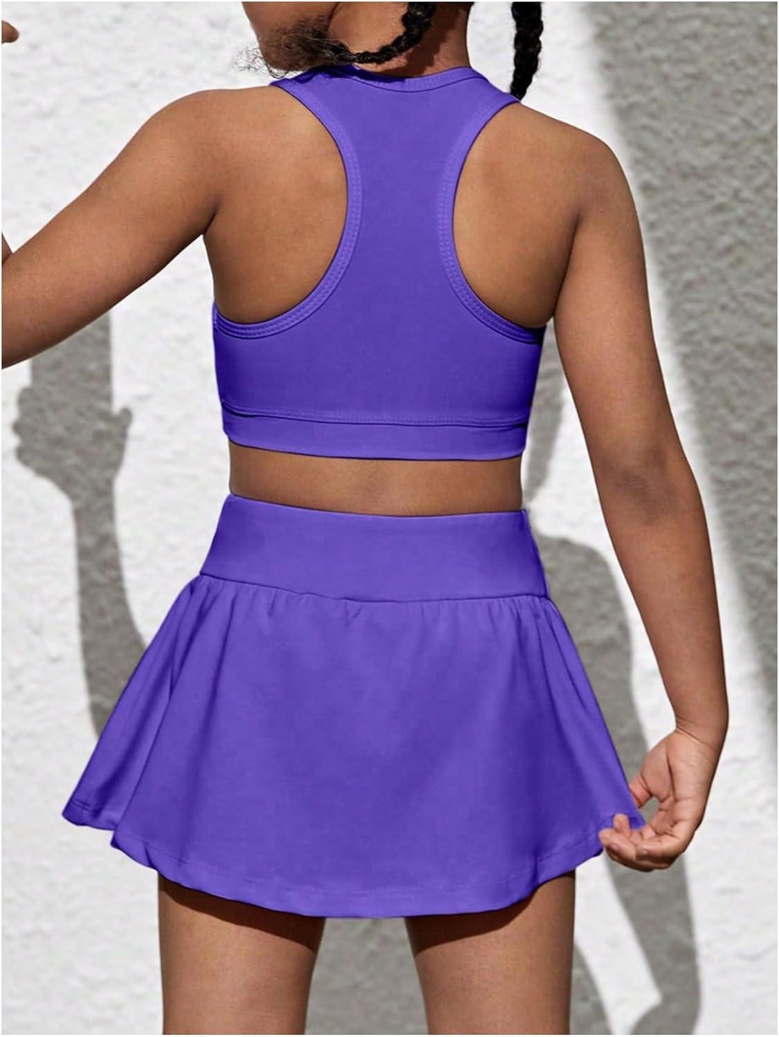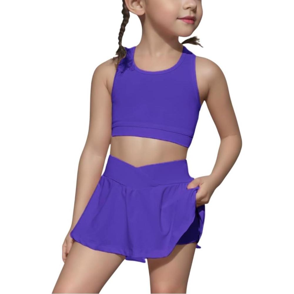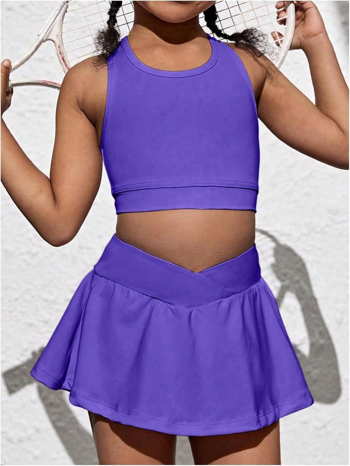 SOLY HUX Toddler Girl’s 2 Piece Workout Outfits Lightweight Crop Tank Tops and Skort Athletic Set(Plain Violet Purple)