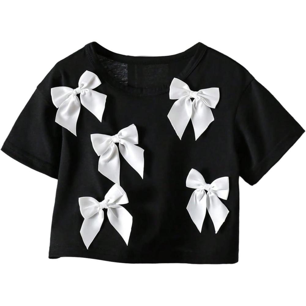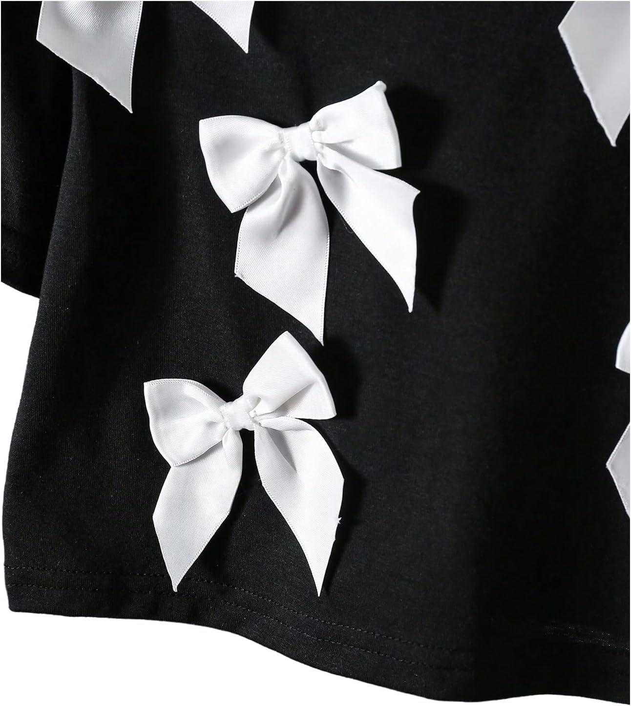SOLY HUX Toddler Girl’s Cute Bow T Shirt Crew Neck Short Sleeve Tee Y2k Summer Tops(Black Bow)