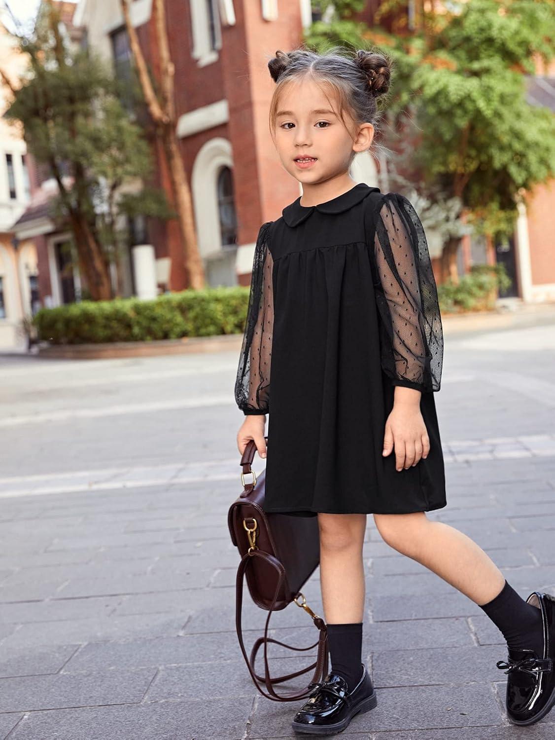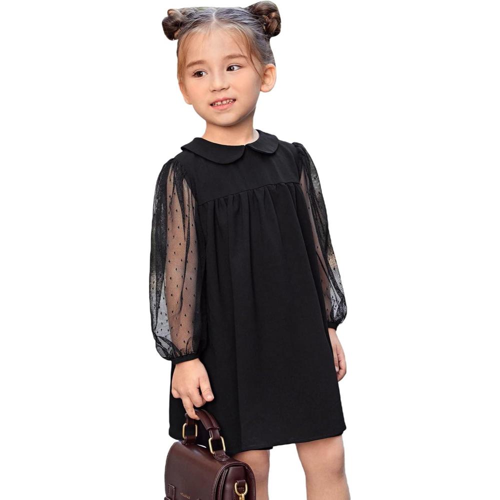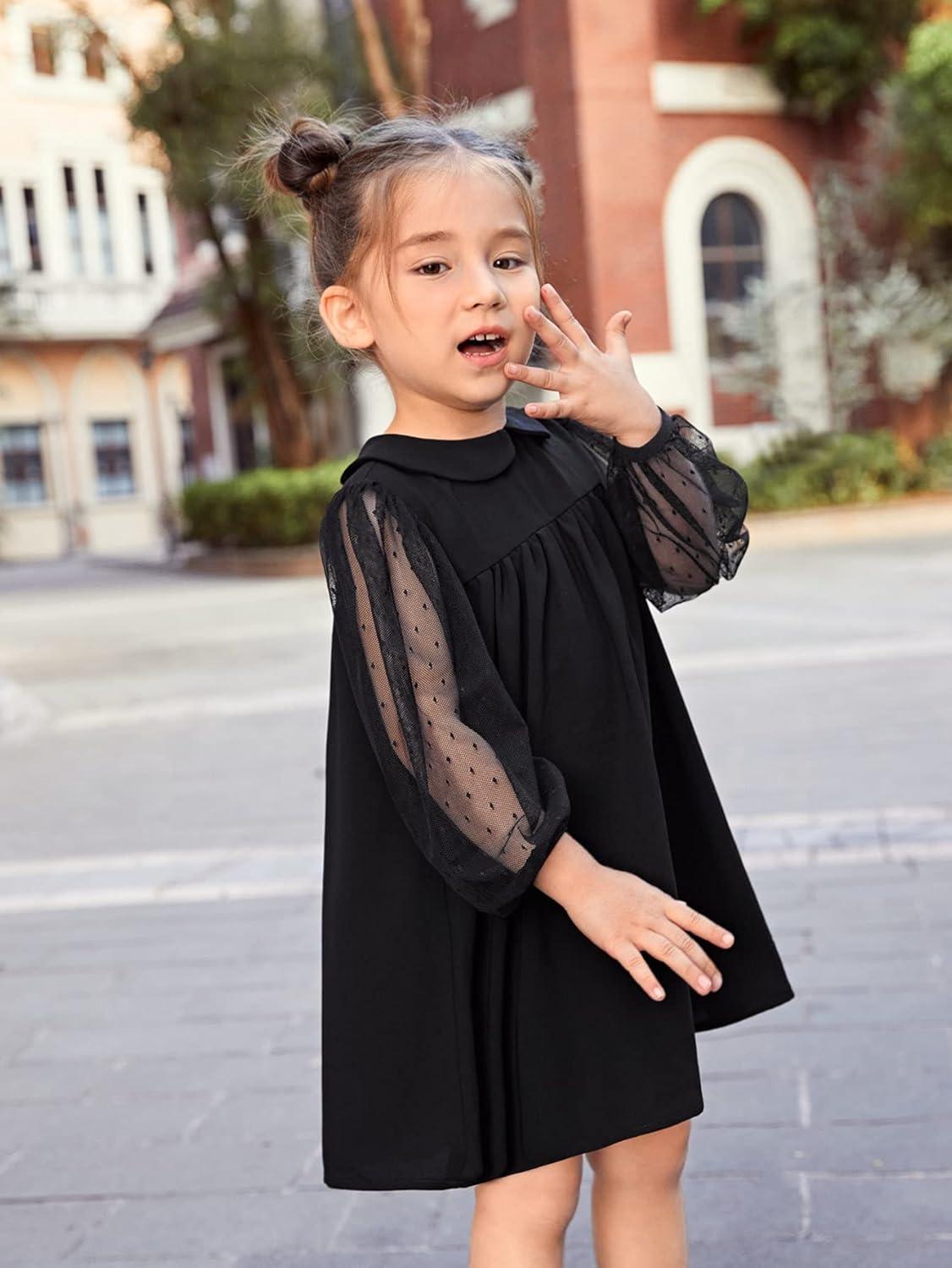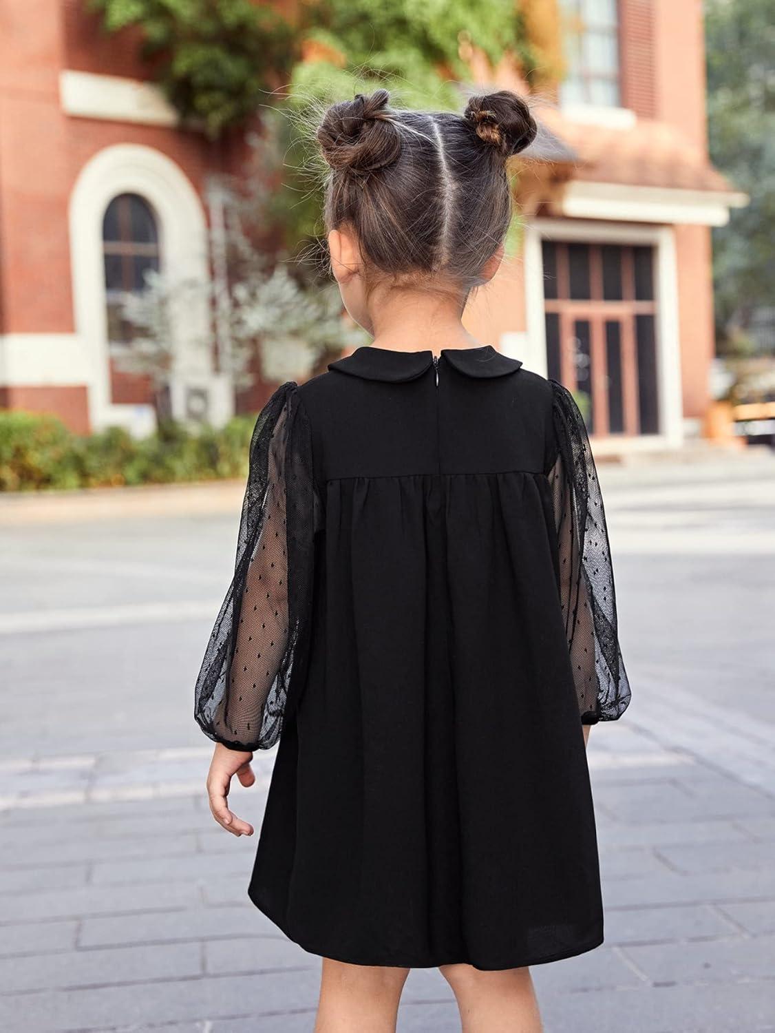 SOLY HUX Toddler Girl’s Doll Collar Sheer Mesh Bishop Long Sleeve Short Dress(Black)