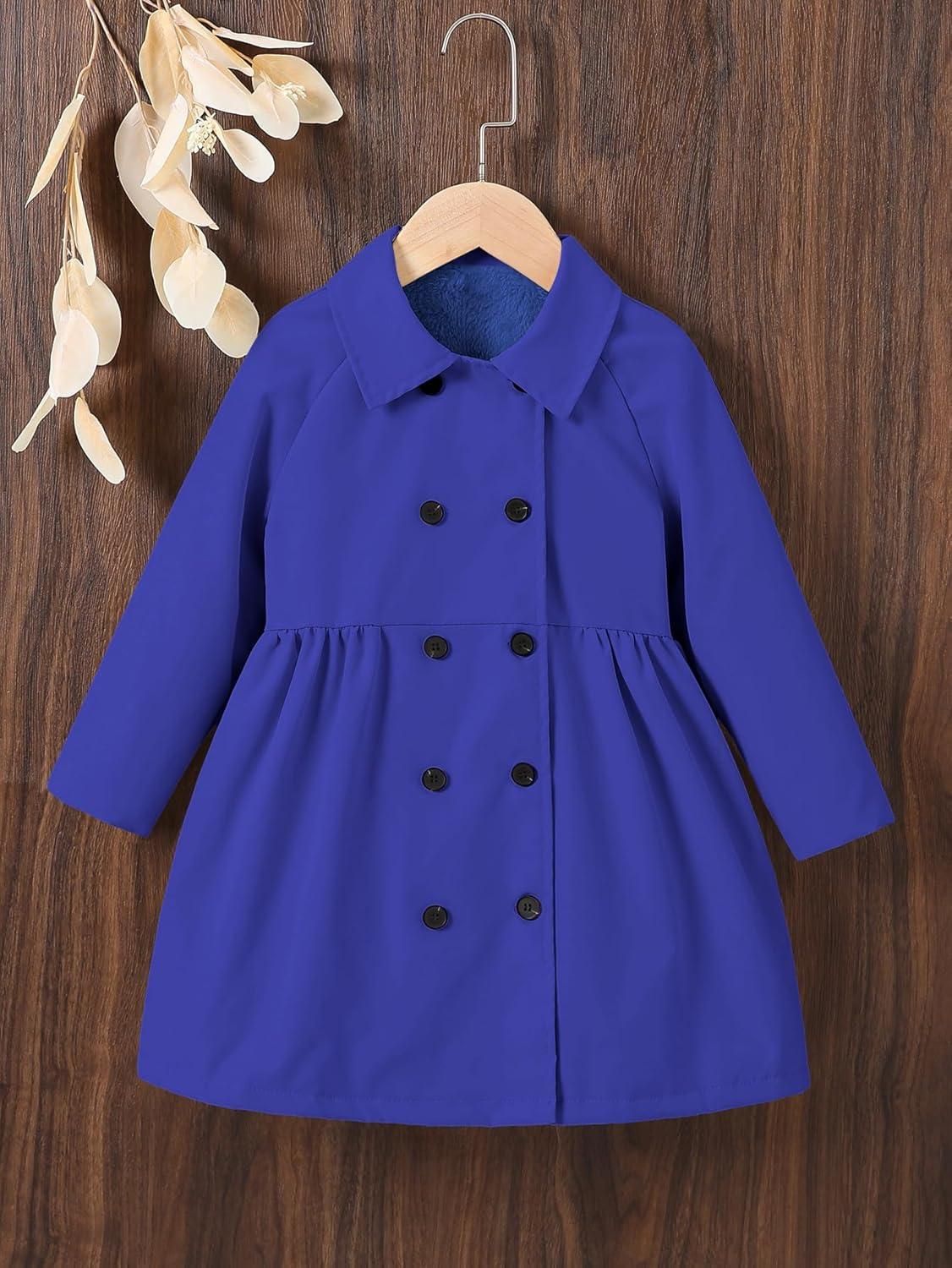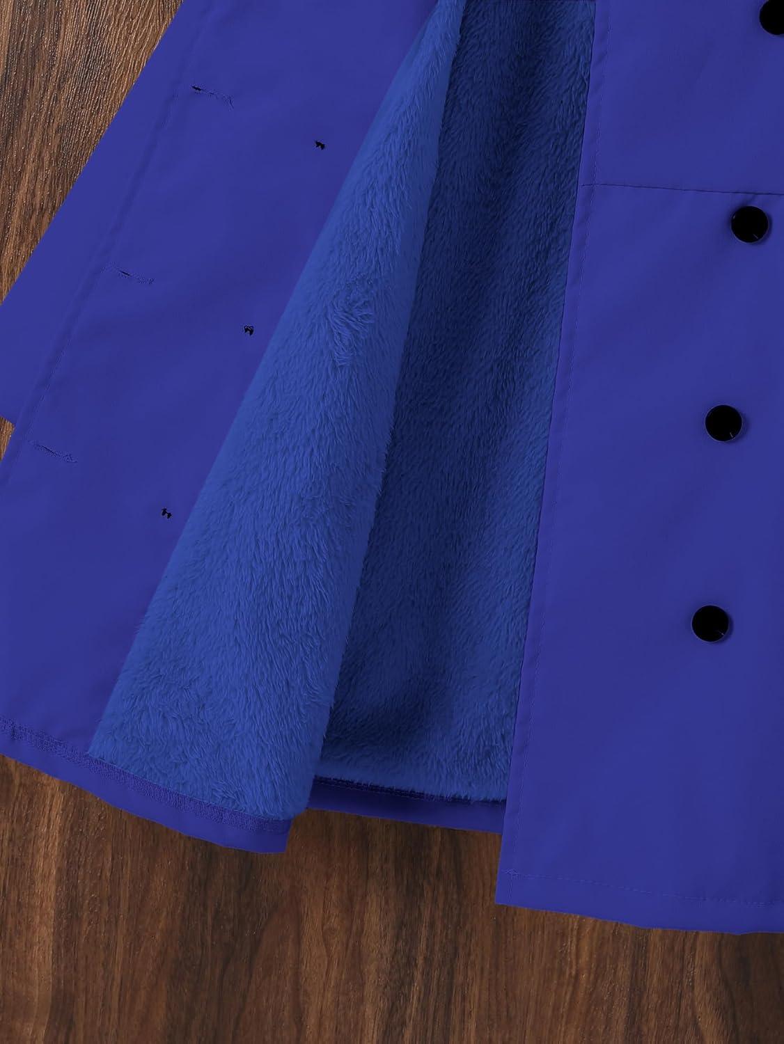 SOLY HUX Toddler Girl’s Double Breasted Long Sleeve Trench Coat Teddy Lined Outerwear Winter Pea Coats(Royal Blue)