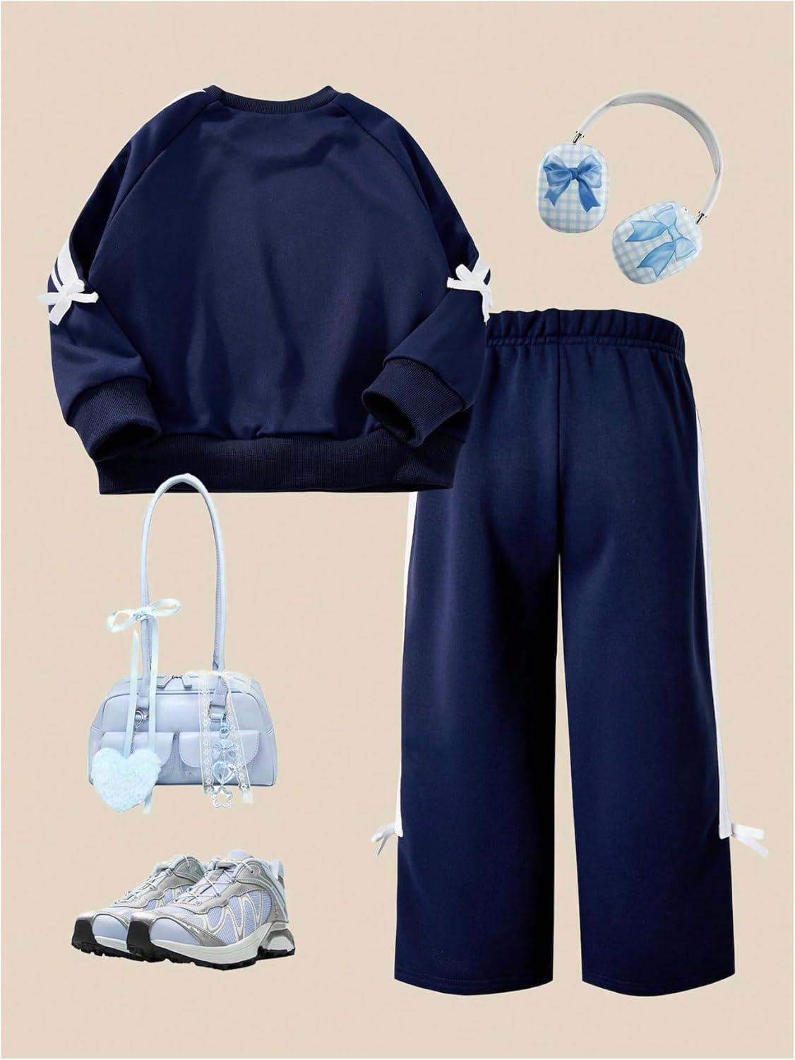 SOLY HUX Toddler Girl’s Fall Clothes 2 Piece Set Bowknot Crewneck Sweatshirts and Wide Leg Pants Sports Outfits(Dark Blue)