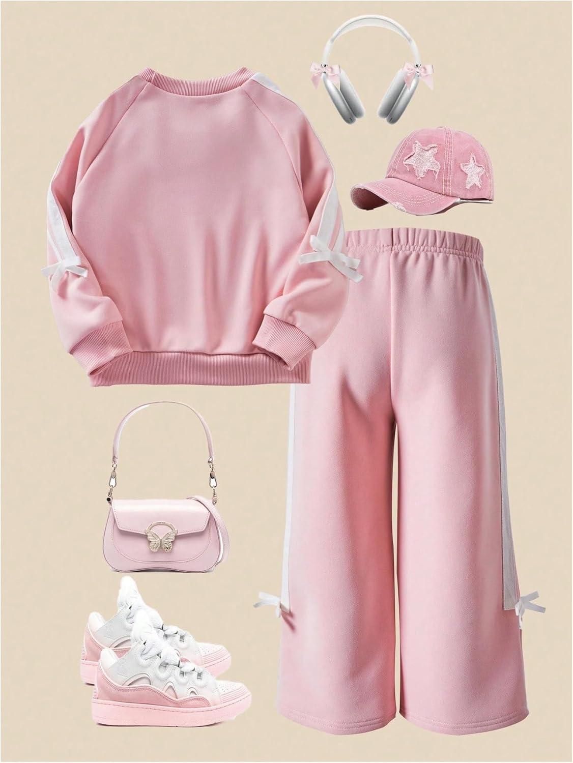 SOLY HUX Toddler Girl’s Fall Clothes 2 Piece Set Bowknot Crewneck Sweatshirts and Wide Leg Pants Sports Outfits(Pink Bows)