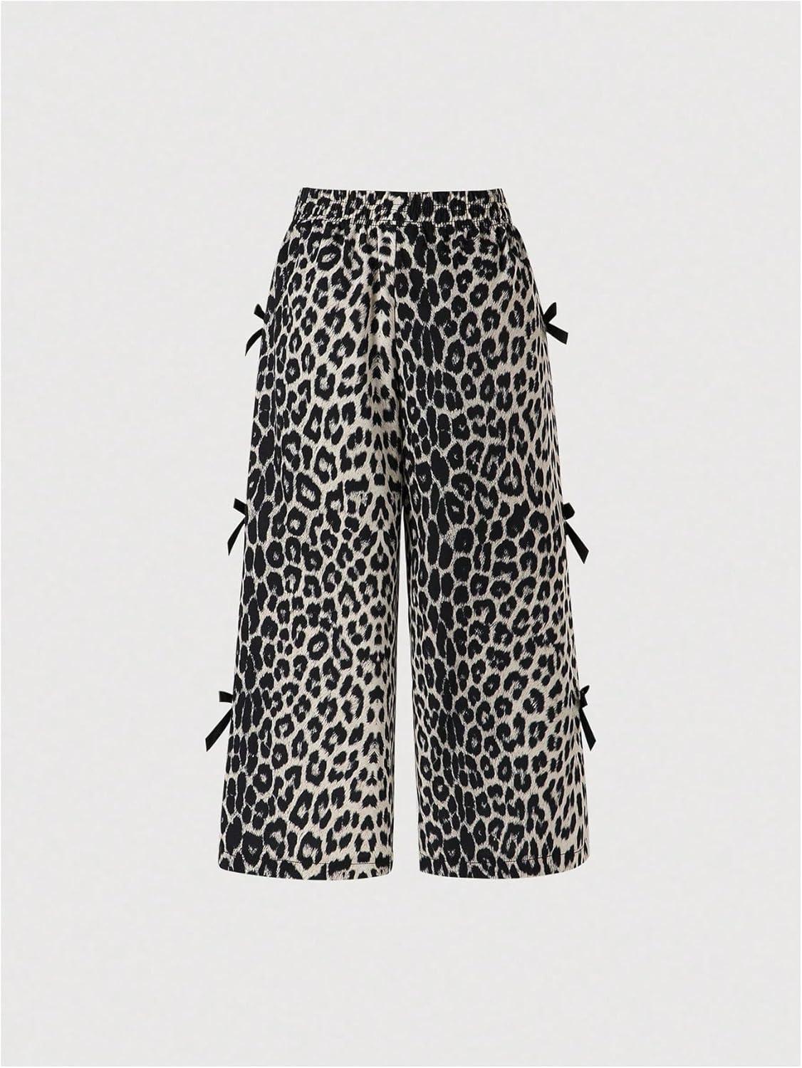 image:imageSOLY HUX Toddler Girls Leopard Bow Pants Y2k Cheetah Print High Waisted Wide Leg Baggy Pants TrousersMulticoloured Leopard