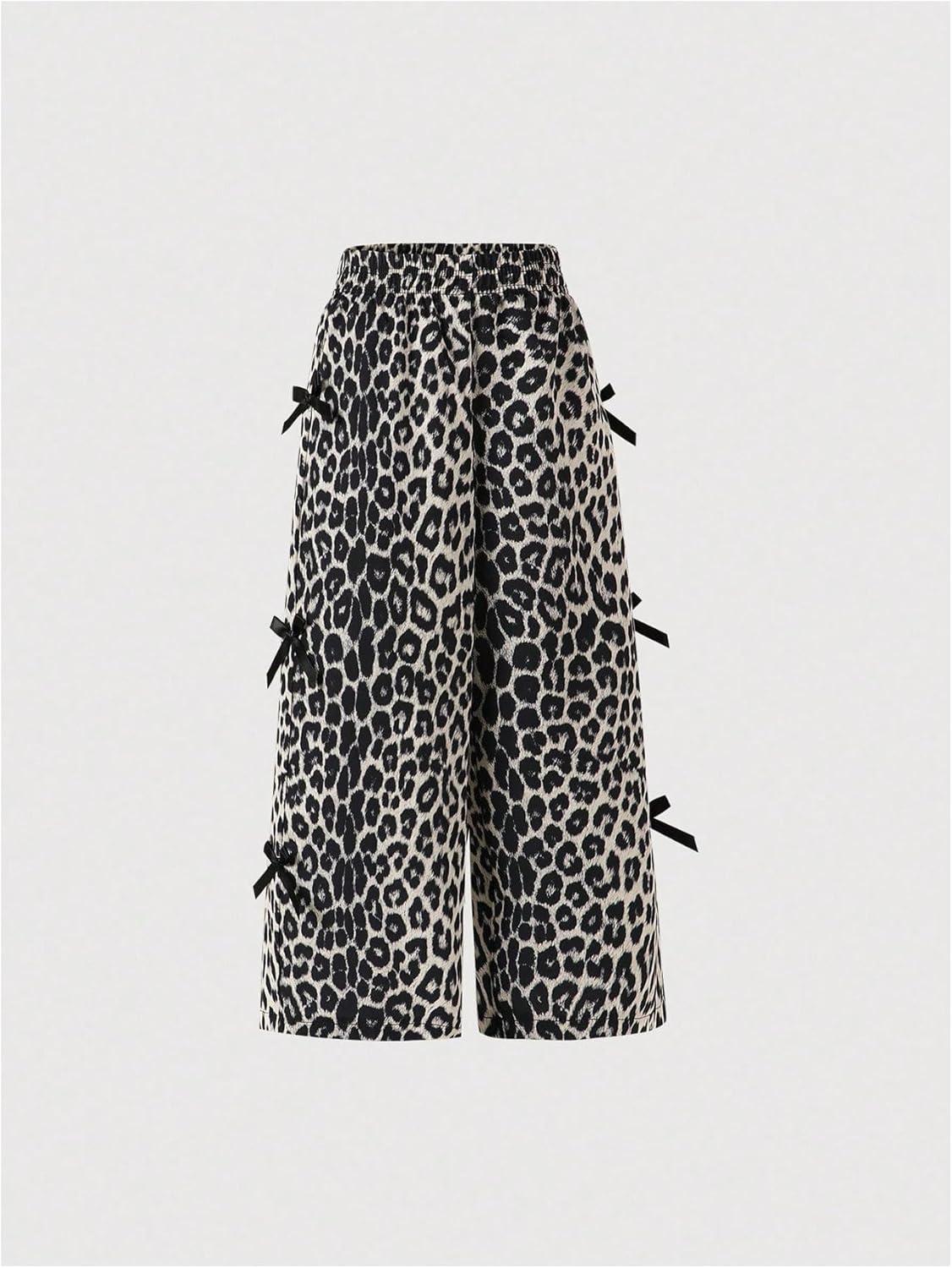 SOLY HUX Toddler Girl’s Leopard Bow Pants Y2k Cheetah Print High Waisted Wide Leg Baggy Pants Trousers(Multicoloured Leopard)